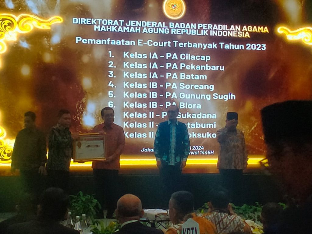 Pengadilan Agama Cilacap Raih Peringkat I Penghargaan Pemanfaatan E-Court Terbanyak Tahun 2023