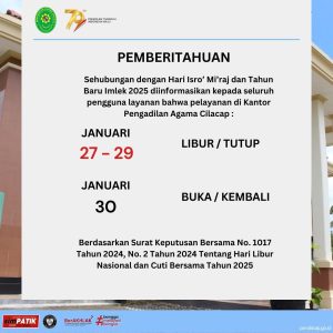 Berita & Informasi Pembukaan Sidang Keliling Pengadilan Agama Cilacap 2025 Read More » January 24, 2025