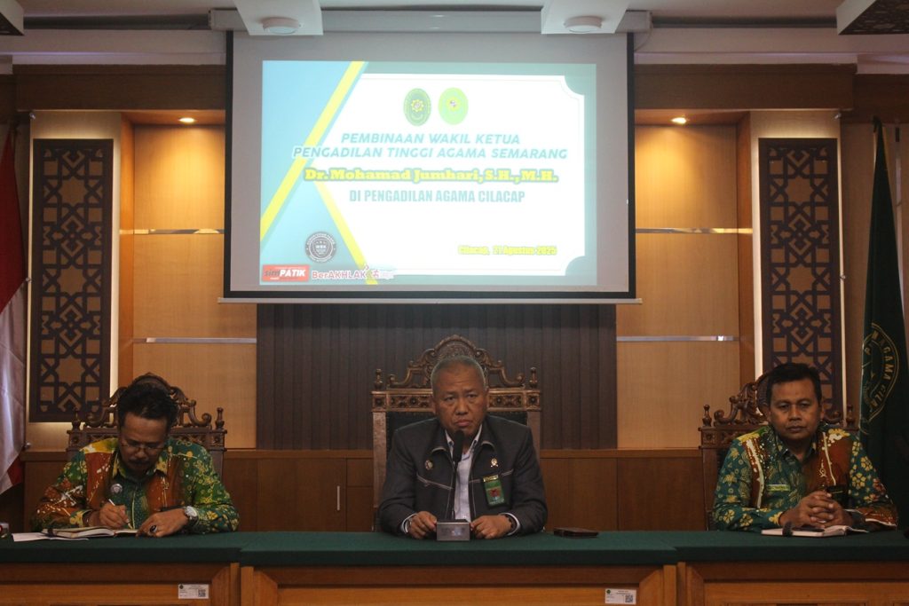 Cilacap – Wakil Ketua Pengadilan Tinggi Agama Semarang, Dr. Mohamad Jumhari, S.H., M.H. melaksanakan kunjungan ke Pengadilan Agama Cilacap pada Kamis (21/8) dalam rangka melaksanakan pembinaan kepada para aparatur Pengadilan Agama Cilacap. Kedatangannya pada Kamis Siang disambut hangat oleh Ketua, Wakil Ketua, Panitera, Sekretaris, dan para aparatur Pengadilan Agama Cilacap. Kunjungan ini merupakan yang perdana […]