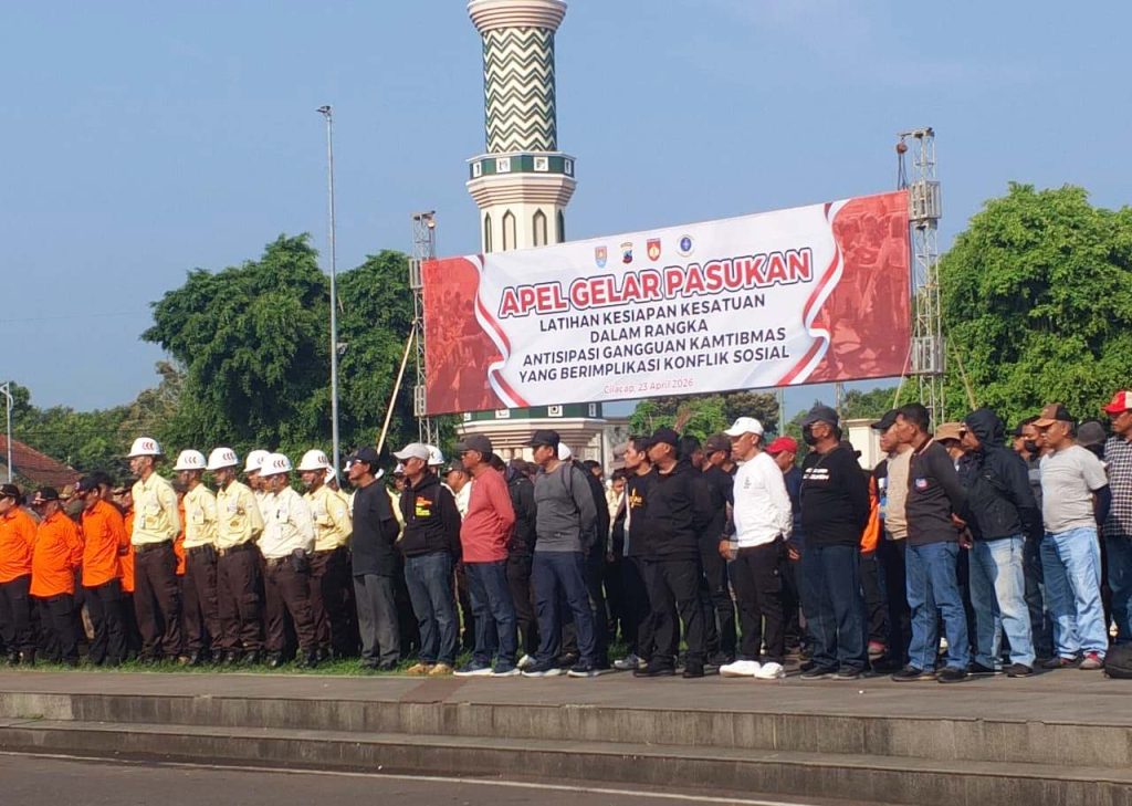 Cilacap – Kamis, 23 April 2026 – Pemerintah Kabupaten Cilacap bersama jajaran aparat keamanan menggelar apel pasukan latihan kesiapan kesatuan sebagai langkah antisipasi terhadap potensi gangguan kamtibmas yang dapat berimplikasi pada konflik sosial.