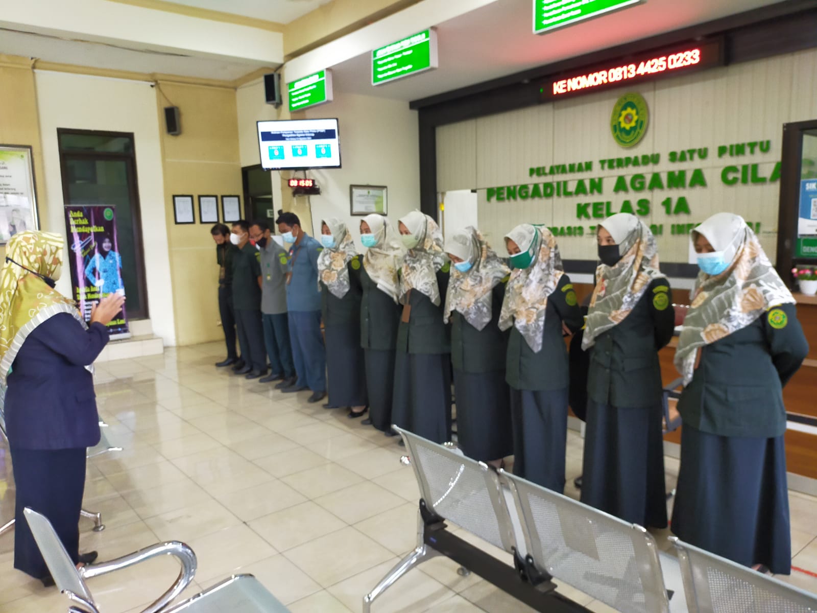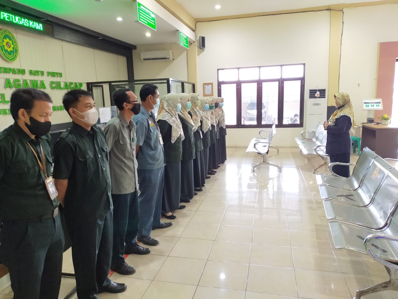 Selasa, 31 Agustus 2021 bertempat di Ruang Pelayanan Terpadu Satu Pintu (PTSP) Pengadilan Agama Cilacap, diadakan briefing rutin kepada petugas PTSP Pengadilan Agama Cilacap. Ibu Dra. Elvi Setiyaningsih, M.Si. selaku Panitera Muda Permohonan memberikan brifing Dalam arahannya, Ibu Dra. Elvi Setiyaningsih, M.Si. menekankan agar para petugas PTSP memberikan pelayanan yang sebaik-baiknya kepada para pencari keadilan sesuai dengan SOP petugas PTSP karena PTSP merupakan garda terdepan Pengadilan Agama Cilacap.
