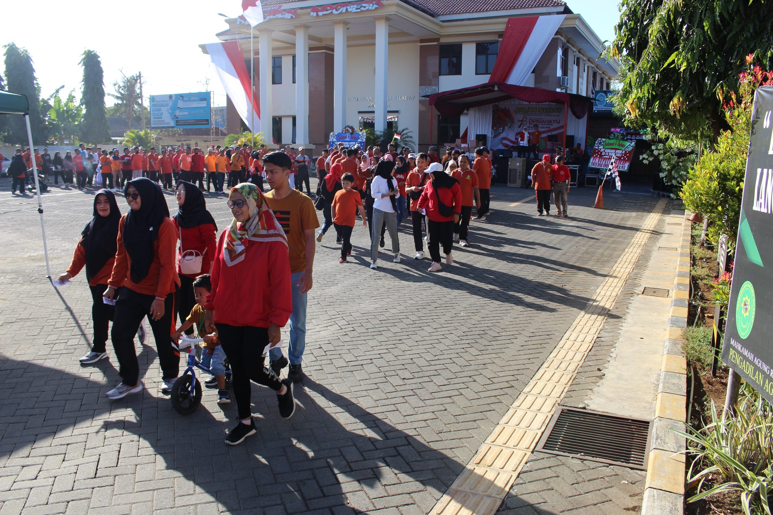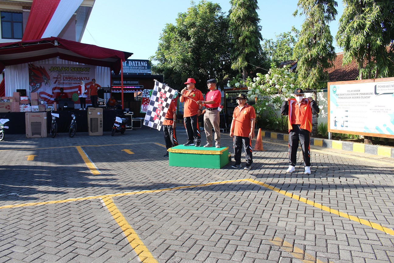 Pada Hari Jum’at, Tanggal 18 Agustus 2023 telah dilaksanakan gerak jalan santai dalam rangka memperingati HUT RI dan HUT Mahkamah Agung RI yang ke 78. Gerak jalan santai yang mengambil start di halaman depan Pengadilan Agama Cilacap ini diikuti oleh seluruh warga besar dari Pengadilan Agama Cilacap serta keluarga besar dari Advokat yang ada di Kabupaten Cilacap.
