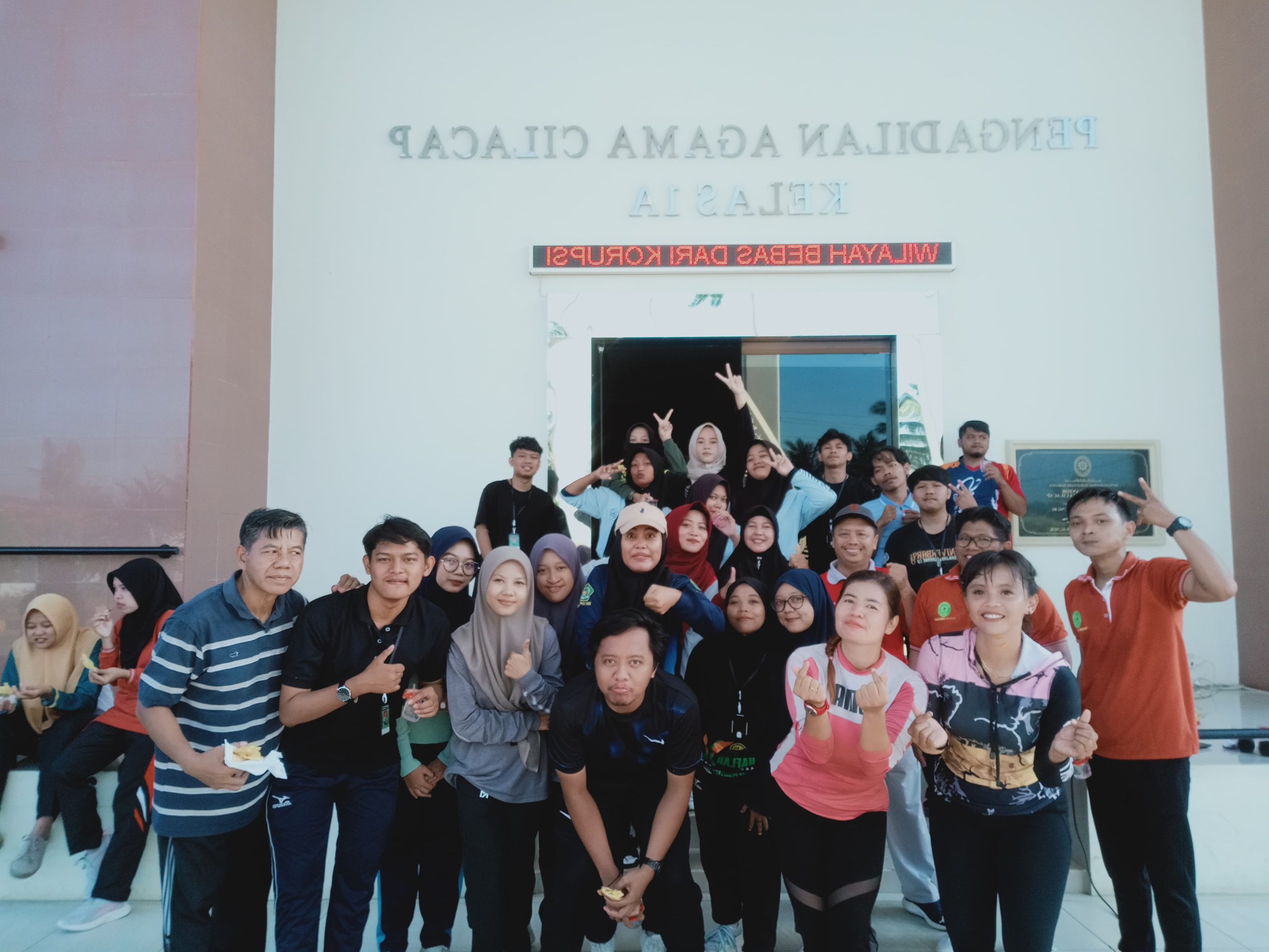 Cilacap – Jum’at (12/07/2024), Pengadilan Agama Cilacap mengisi kegiatan Jum’at pagi dengan senam di halaman depan kantor Pengadilan Agama Cilacap yang dimulai pada pukul 07.30 WIB. Senam pagi tersebut diikuti oleh Pimpinan dan seluruh pegawai Pengadilan Agama Cilacap. Senam pagi merupakan suatu aktifitas fisik yang perlu diadakan untuk menjaga kebugaran jasmani para pegawai. Gerakan-gerakan senam pagi bermanfaat untuk melatih otot-otot pada tubuh, melancarkan peredaran darah sehingga lebih sehat dan segar. Paparan sinar matahari pagi juga bagus bagi tubuh karena kandungan vitamin D alaminya. Jika tubuh sehat dan bugar secara fisik, maka kemampuan konsentrasi juga akan meningkat dan memudahkan dalam menyelesaikan pekerjaan sehari-hari. Senam juga dapat memperkuat tulang, membantu menormalkan aliran darah dan melatih urat saraf yang kaku serta meningkatkan kesehatan jantung dan stamina tubuh. Olahraga ini juga bisa menjaga fungsi otak, mencegah pikun, juga bisa mengurangi stress dan membuat lebih bahagia karena dengan kita melakukan gerakan senam maka tubuh akan melepaskan hormon endorphine.