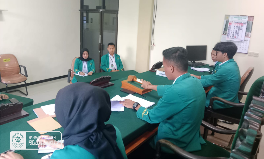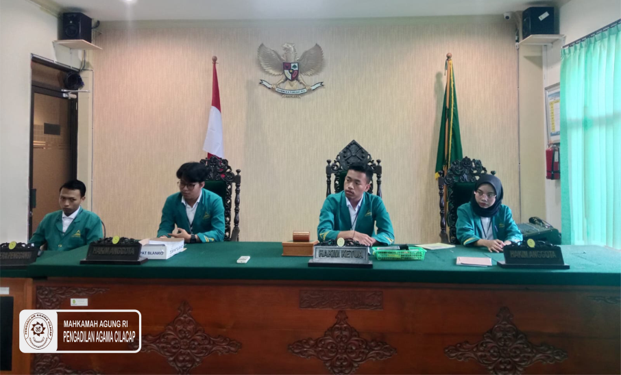 Cilacap, PA Cilacap – Setelah 1 bulan lamanya para mahasiswa UIN Syaifudin Zuhri Purwokerto yg berjumlah 12 orang melaksanakan  PKL  dengan pemberian materi dan diskusi dengan para Hakim, Panitera dan Sekretaris Pengadilan Agama Cilacap, dan juga pengamatan serta praktek di beberapa bagian baik kepaniteraan dan ke sekretariatan, maka mulai hari ini, Selasa 14 Februari 2023, dibawah bimbingan Hakim, dilakukan latihan sidang semu di ruang Sidang 3 (ruang Sidang Umar Abdul Aziz).