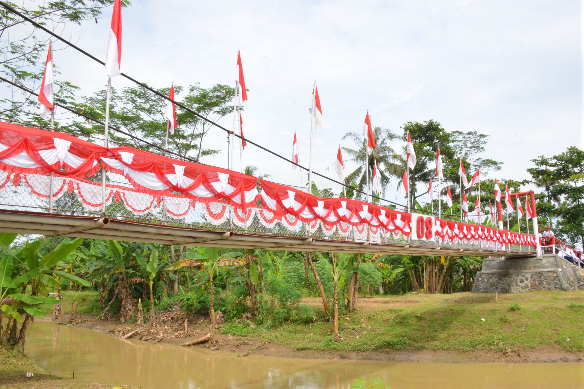 Dedi menjelaskan bahwa jembatan ini sangat penting untuk meningkatkan akses masyarakat, terutama bagi anak-anak sekolah dan warga yang melakukan aktivitas sehari-hari. “Sebelumnya, masyarakat harus menggunakan jembatan kayu atau menyeberangi sungai melalui pipa gas. Dengan adanya jembatan ini, akses menjadi lebih mudah dan aman,” ungkapnya. Jembatan Merah Putih 08 ini merupakan hasil gotong royong masyarakat setempat, TNI, dan berbagai pihak lainnya.