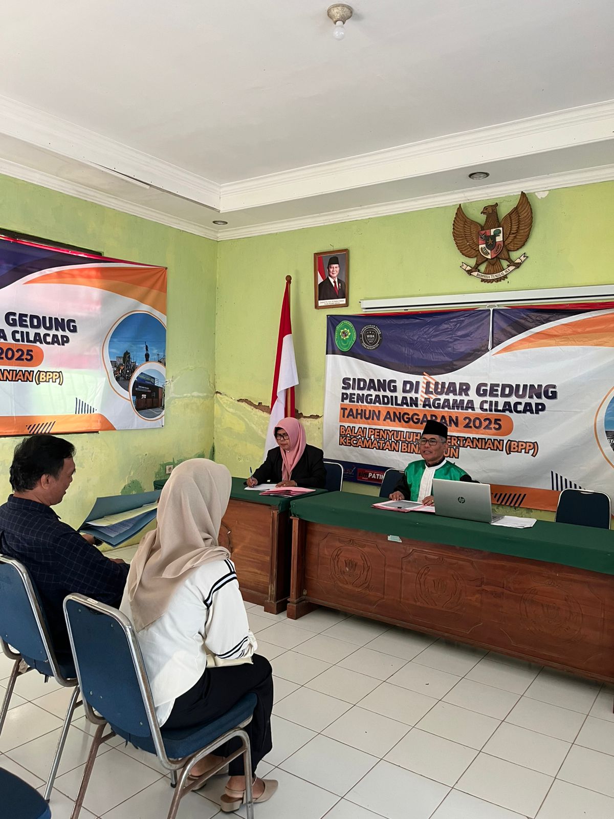 Cilacap – Pengadilan Agama Cilacap menggelar Sidang di Luar Gedung atau biasa disebut Sidang Keliling (Sidkel) di Kecamatan Binangun, Jumat (16/05/2025). Kegiatan ini didasari surat perintah tugas Nomor: 0401/KPA.W11-A4/ST.HK2.6/V/2025 untuk melaksanakan Sidang di Luar Gedung yang bertempat di Balai Penyuluhan Pertanian (BPP) Kecamatan Binangun, Kabupaten Cilacap. Sidang Keliling (Sidkel) ini berjalan lancar dengan menggelar sidang sebanyak 6 perkara.