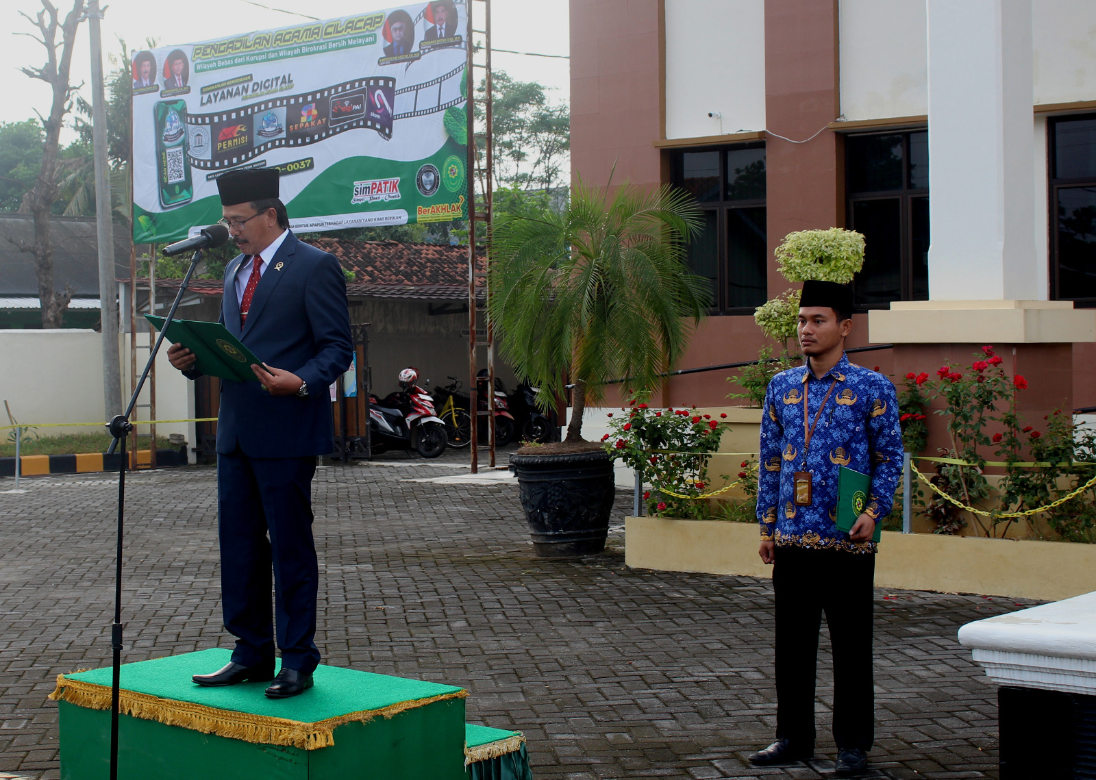 Cilacap, 02 Juni 2025 – Dalam rangka memperingati Hari Lahir Pancasila, Pengadilan Agama Cilacap menggelar upacara yang dihadiri oleh Aparatur Pengadilan Agama Cilacap. Acara tersebut dimulai pukul 07.00 WIB tepat di halaman Kantor Pengadilan Agama Cilacap. Tema peringatan hari lahir Pancasila tahun 2025 ini yaitu “Memperkokoh Ideologi Pancasila, Menuju Indonesia Raya” yang menegaskan kembali komitmen seluruh elemen bangsa untuk memperkuat nilai-nilai dasar negara sebagai landasan utama dalam mewujudkan Indonesia yang maju, berdaulat, dan bersatu.