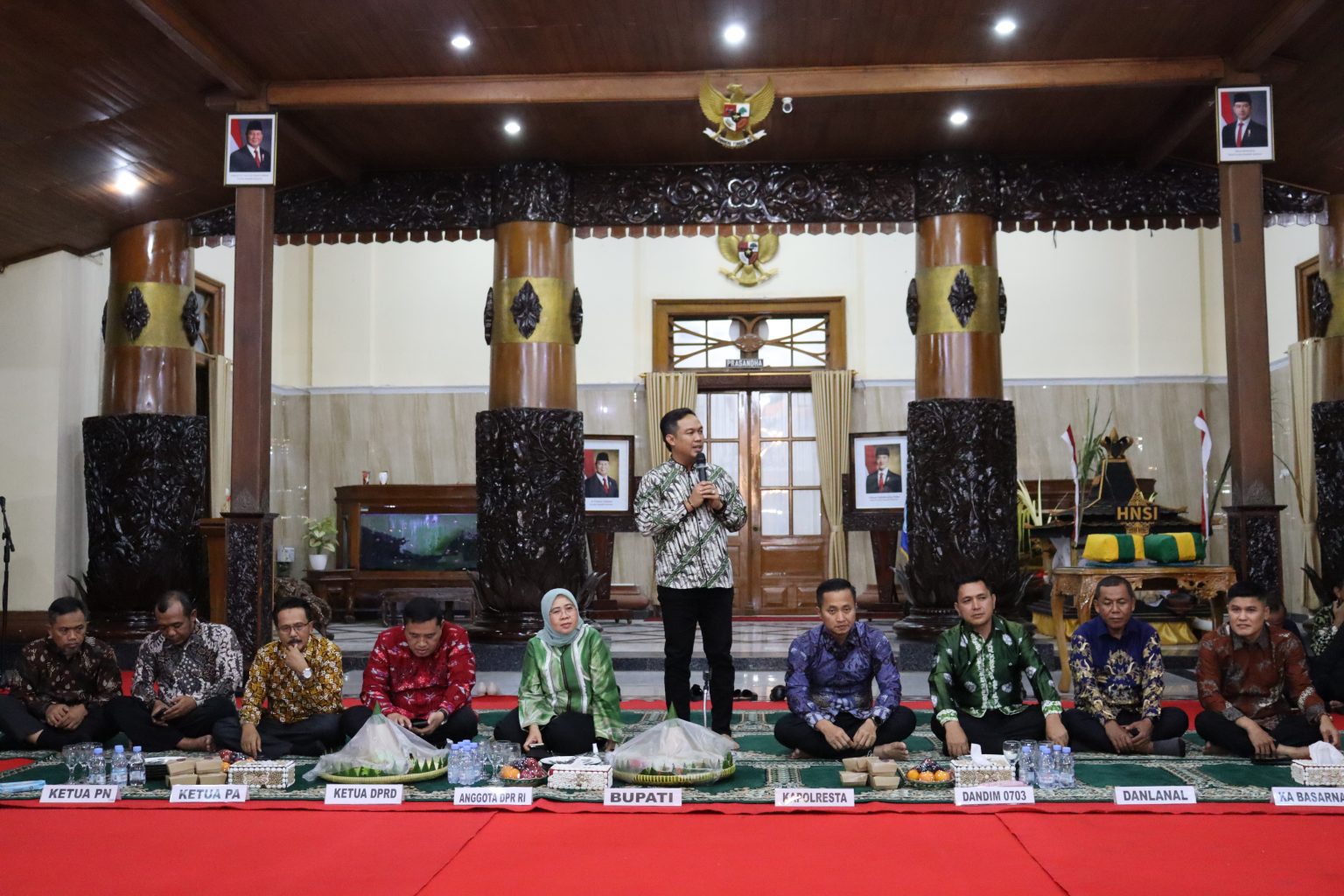 Cilacap – Ketua Pengadilan Agama Cilacap Bapak Drs. Ahmad Juaeni, MH menghadiri Malam Tasyakuran Awali Rangkaian Acara Festival Nelayan Tahun 2025, Kamis (26/06/2025) di Pendopo Wijayakusuma Sakti Cilacap. Acara diawali dengan penyerahan sesaji beserta jolen-jolen dari Keluarga Mataram diterimakan kepada Wakil Ketua I Himpunan Nelayan Seluruh Indonesia (HNSI) Kabupaten Cilacap, Parjo