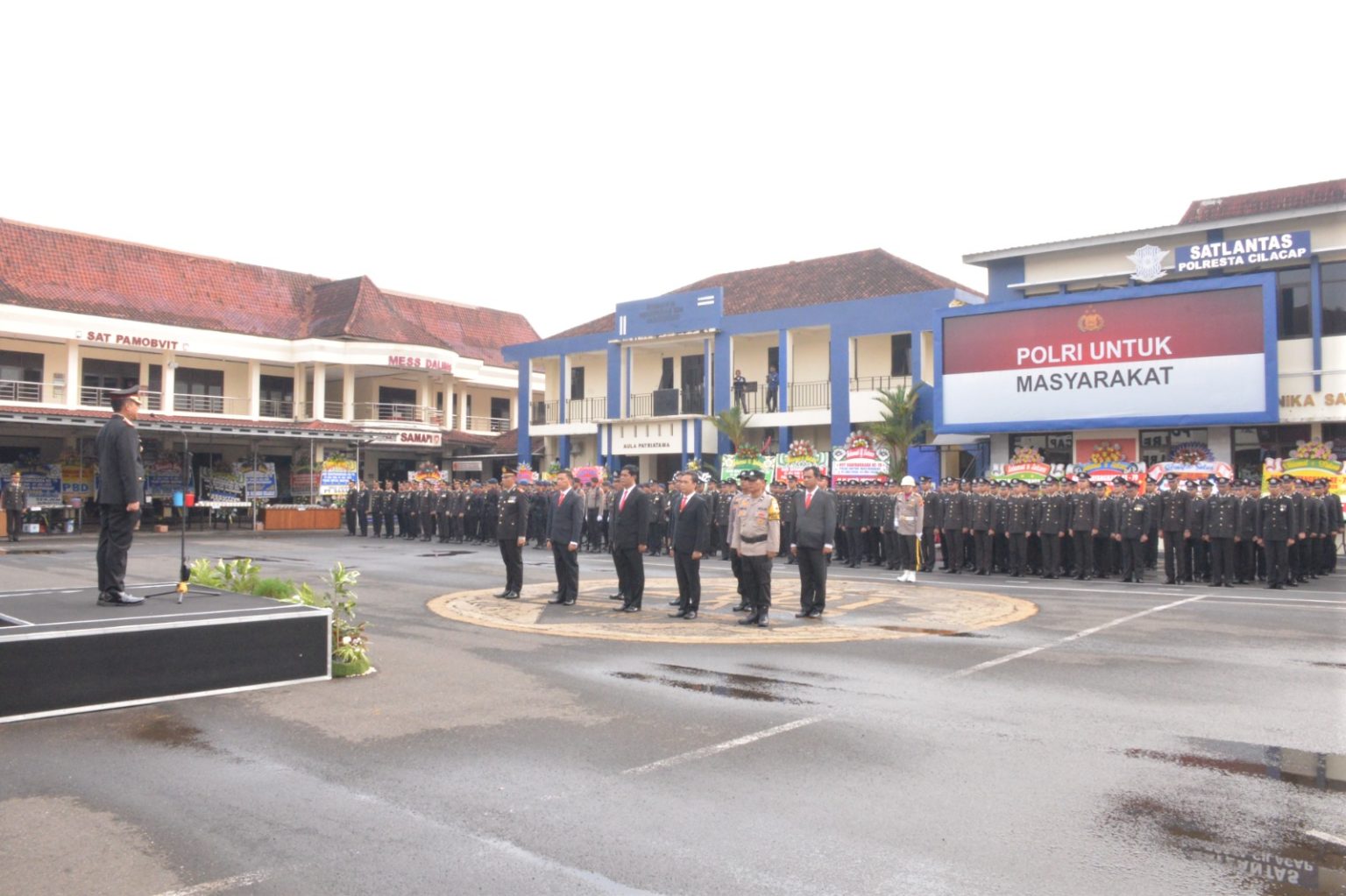 Upacara dipimpin oleh Wakapolresta Cilacap AKBP Rudi Saeful Hadi dan dihadiri oleh Bupati Cilacap Syamsul Auliya Rachman, jajaran Forum Koordinasi Pimpinan Daerah (Forkopimda), serta pejabat utama Polresta Cilacap.
