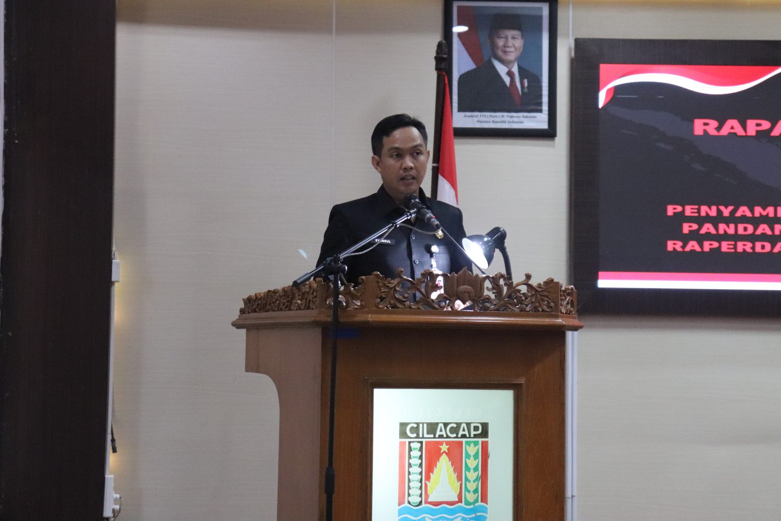Cilacap – Panitera Muda Hukum Pengadilan Agama Cilacap, Imah Supriyatiningsih, SH., menghadiri Rapat Paripurna DPRD perihal Tanggapan dan/atau Jawaban Bupati Cilacap terhadap Pandangan Umum Fraksi-Fraksi DPRD Kabupaten Cilacap terhadap Rancangan Peraturan Daerah Kabupaten Cilacap tentang Rencana Pembangunan Jangka Menengah Daerah Kabupaten Cilacap Tahun 2025-2029, Rabu (04/6/2025)