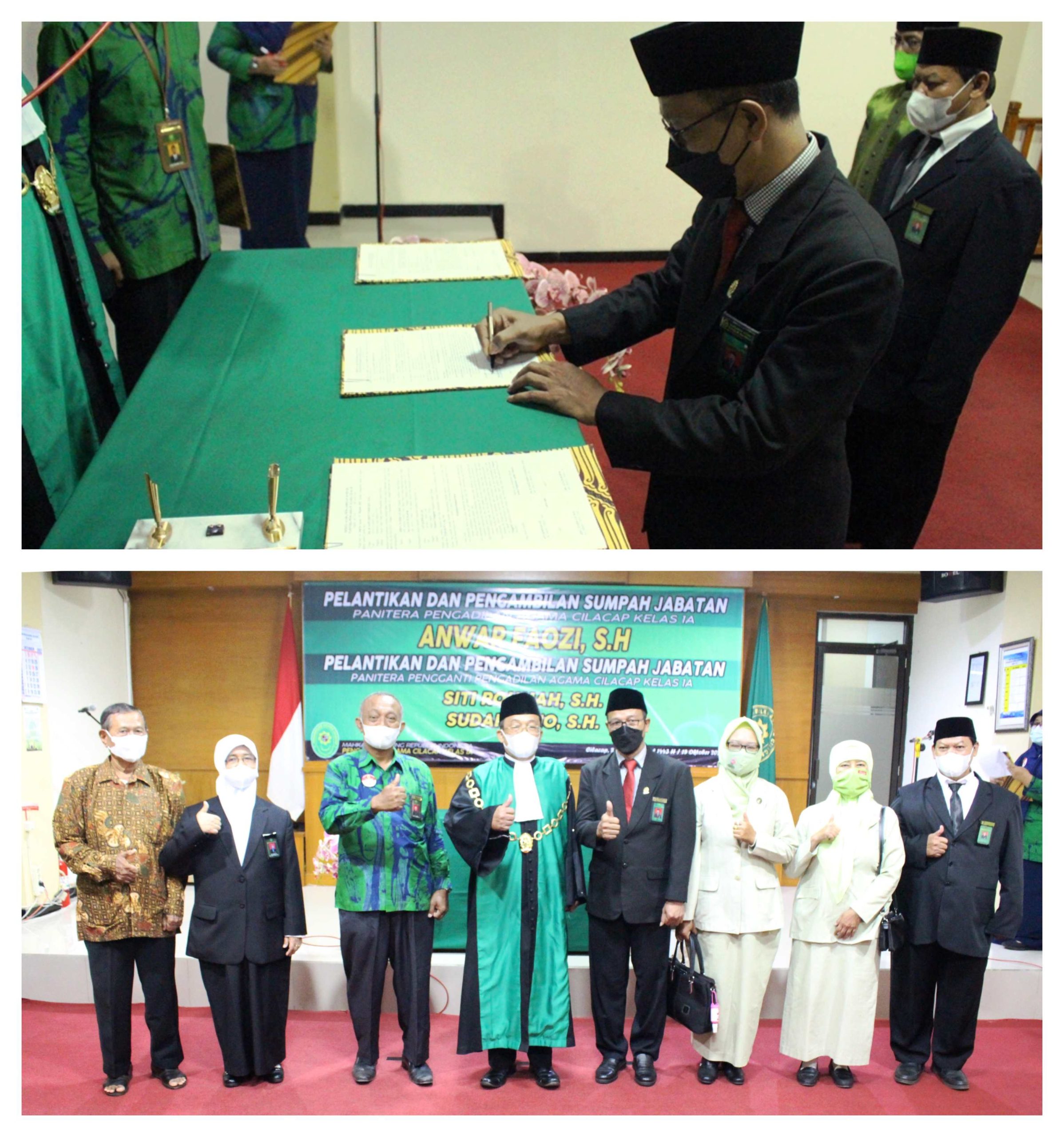 Bertempat di ruang sidang utama pada hari Jumat, 15 Oktober 2021 Ketua Pengadilan Agama Cilacap Drs. H. Saefuddin Turmudzy, M.H melantik Anwar Faozi, S.H., Sudarsono, S.H dan Siti Rohmah, S.H masing-masing sebagai Panitera dan Panitera Pengganti Pengadilan Agama Cilacap. Anwar Faozi menggantikan pejabat lama Jamali, S.H yang mutasi menjadi Panitera Pengadilan Agama Brebes.