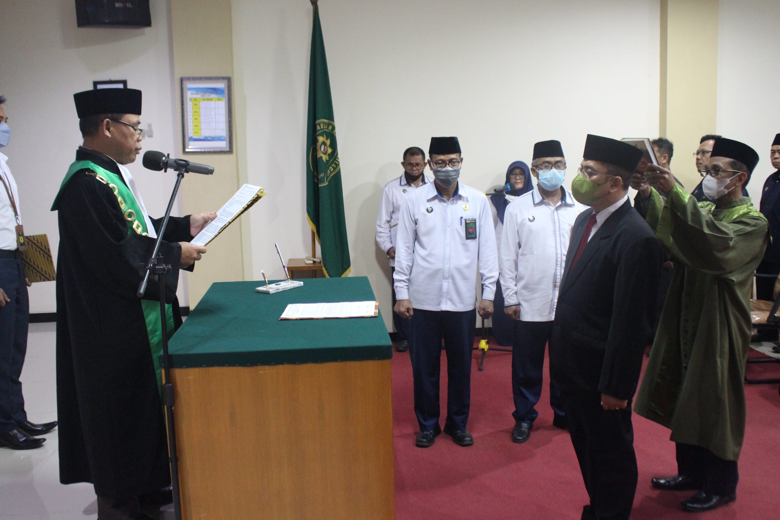 Acara Pelantikan dan Pengambilan Sumpah Jabatan Panitera Muda Hukum Pengadilan Agama Cilacap dihadiri oleh Aparatur Pengadilan Agama Cilacap. Alhamdulillah acara tersebut berlangsung dengan khidmat dan tertib. Acara diawali dengan menyanyikan lagu kebangsaan Indonesia Raya dan Hymne Mahkamah Agung, dilanjutkan Pembacaan Surat Keputusan, Pelantikan Pengambilan Sumpah dan Penandatanganan Pakta Integritas.