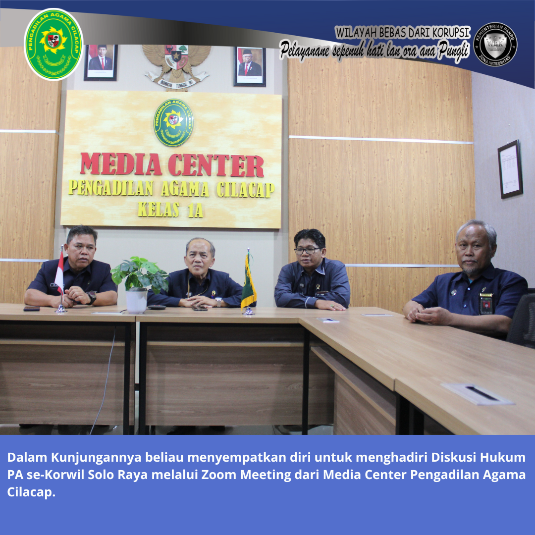 Dalam kunjungannya ke Pengadilan Agama Cilacap, beliau menyempatkan diri mengikuti zoom meeting koordinasi peradilan agama se-Jawa Tengah dari Ruang Media Center Pengadilan Agama Cilacap.