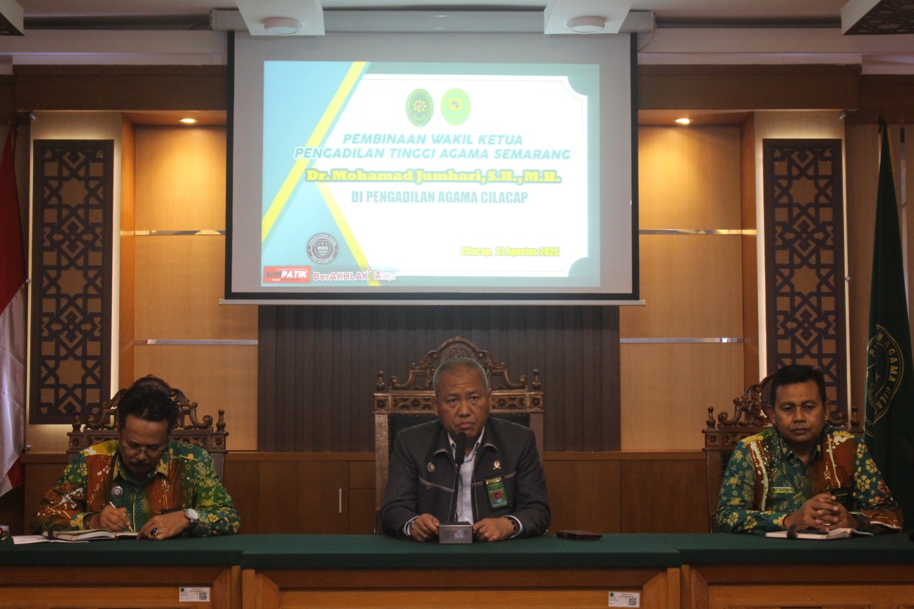 Cilacap – Wakil Ketua Pengadilan Tinggi Agama Semarang, Dr. Mohamad Jumhari, S.H., M.H. melaksanakan kunjungan ke Pengadilan Agama Cilacap pada Kamis (21/8) dalam rangka melaksanakan pembinaan kepada para aparatur Pengadilan Agama Cilacap.