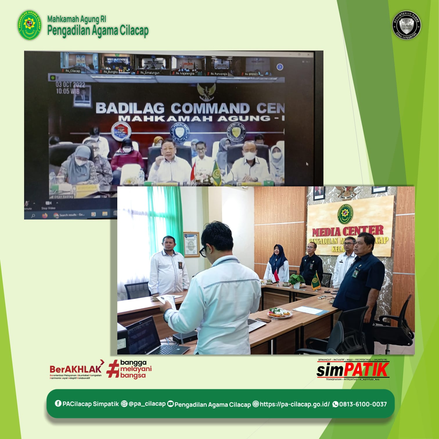 Segenap unsur Pengadilan Agama Cilacap menghadiri penandatanganan nota kesepahaman tersebut melalui zoom dari ruang media center.