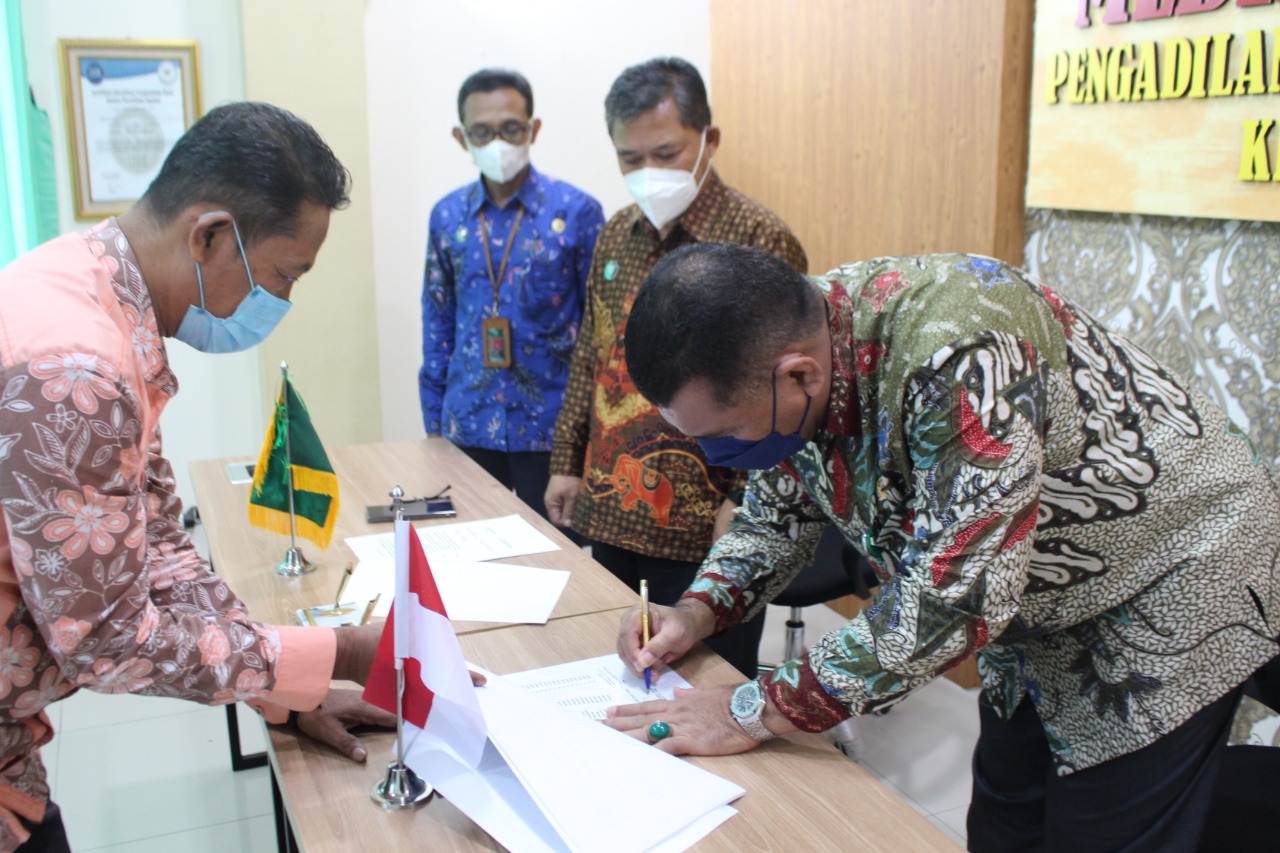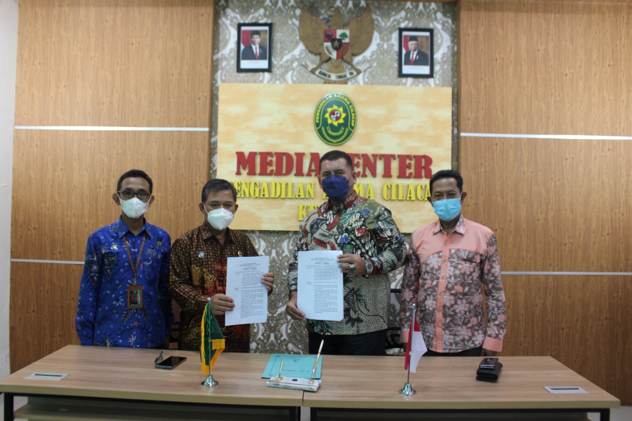 Jum’at, 25 Februari 2022 Pengadilan Agama Cilacap yang dipimpin langsung oleh Ketua Pengadilan Agama Cilacap Bapak Drs. M. Ihsan, M.H., didampingi oleh Panitera Muda Gugatan Bapak Miftakhul Hilal, S.H. menyambut Ketua Pengadilan Negeri Cilacap Bapak Hendri Tobing, SH., MH. didampingi oleh Panitera Muda Perdata Pengadilan Negeri Cilacap Bapak Turyono, S.H. Tujuan dari pertemuan tersebut adalah untuk melakukan penandatanganan Surat Keputusan Bersama dalam menetapkan besaran biaya radius panggilan perkara perdata di wilayah Kabupaten Cilacap. Dengan Kerja sama ini dibangun untuk kepentingan pelayanan berkaitan penanganan biaya perkara yang murah, cepat dan akuntabilitas.