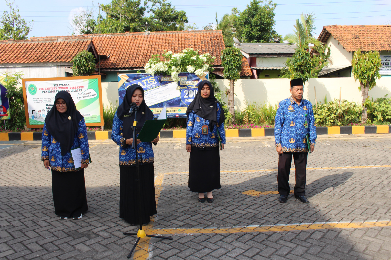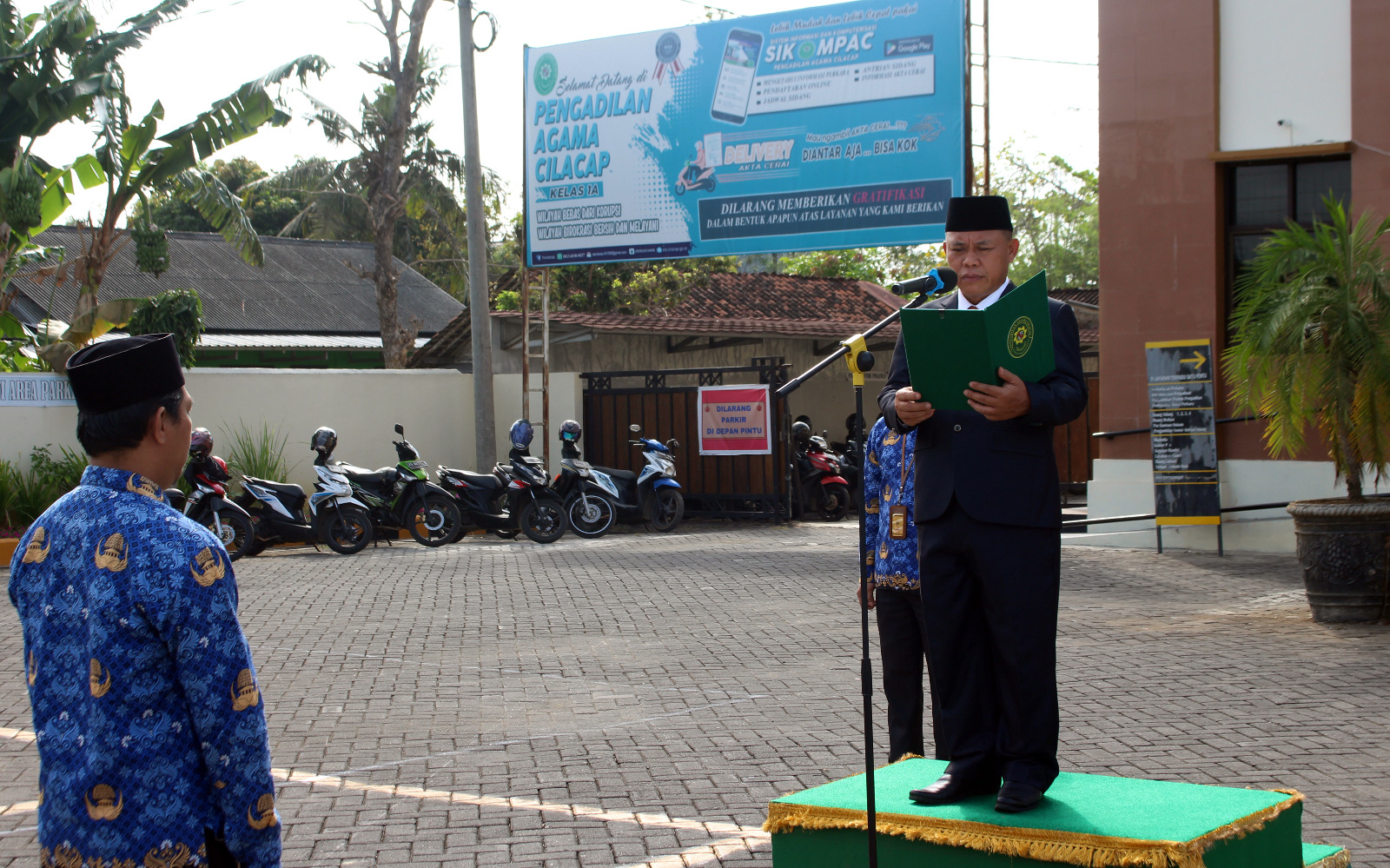 Cilacap – Pengadilan Agama Cilacap menggelar upacara peringatan Hari Kesaktian Pancasila pada Selasa, 1 Oktober 2024 yang dimulai pukul 08.00 WIB. Sebagai Pembina Upacara Ketua Pengadilan Agama Cilacap, Drs. M. Ihsan, MH., dan diikuti oleh seluruh jajaran pimpinan, hakim, para pegawai dan PPNPN, serta mahasiswi PKL di lingkungan Pengadilan Agama Cilacap.
