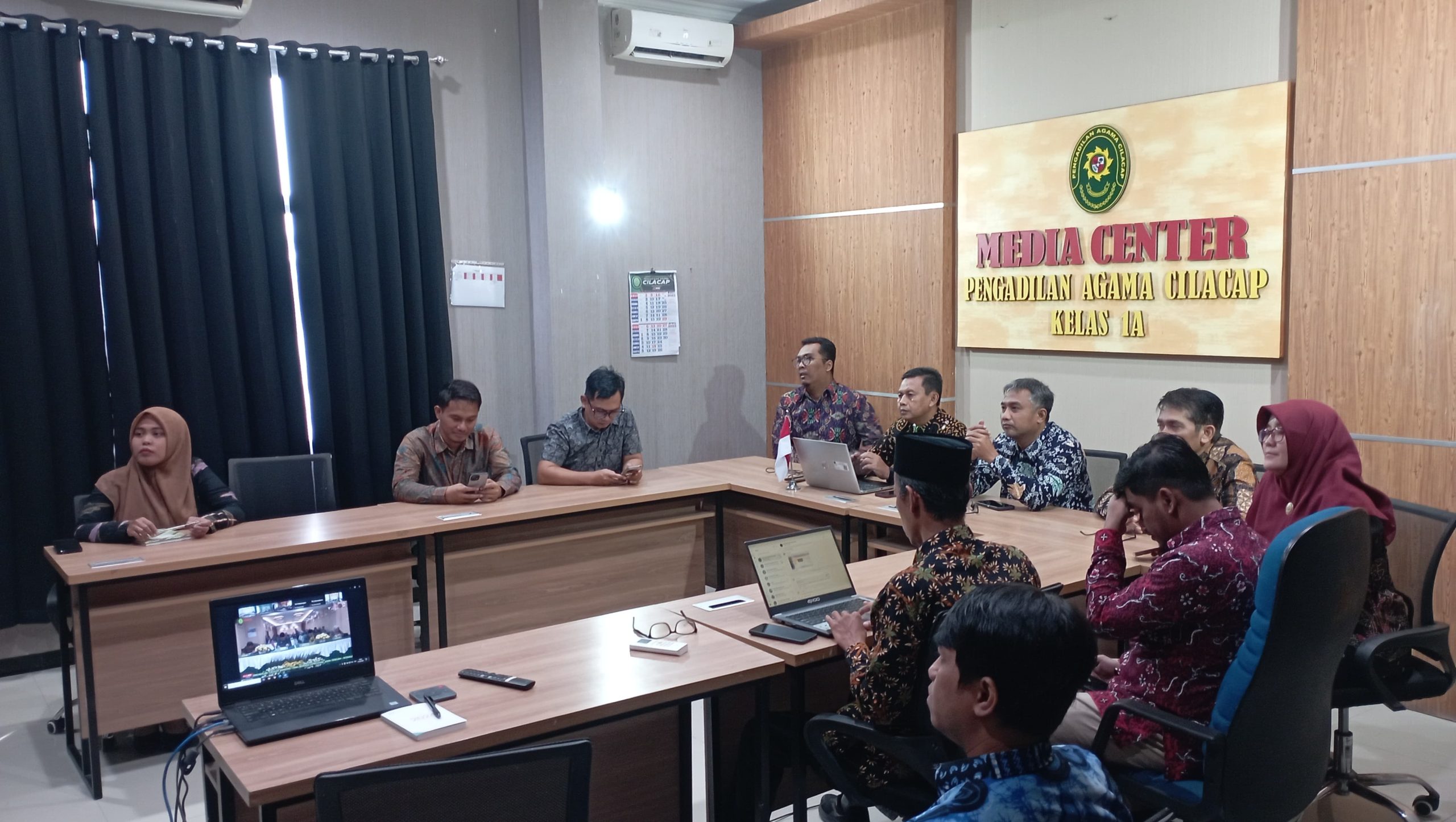 Cilacap, 21 Maret 2025 – Wakil Ketua Pengadilan Agama (PA) Cilacap, Azimar Rusydi, S.Ag., M.H., bersama, para hakim, panitera, sekretaris, panitera muda, dan kasubbag mengikuti kegiatan sosialisasi Sistem Manajemen Anti Penyuapan (SMAP) pada Peradilan Agama di wilayah Pengadilan Tinggi Agama (PTA) Semarang. Kegiatan ini dilaksanakan secara daring melalui aplikasi Zoom di media center PA Cilacap.