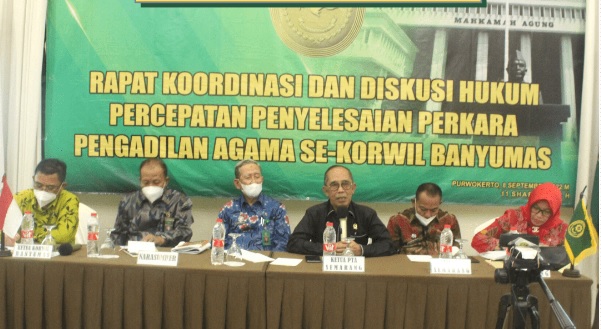 Pengadilan Agama se Korwil Banyumas menyelenggarakan rapat koordinasi dan diskusi hukum yang dilaksanakan pada tanggal 8 sampai dengan 9 September 2022 bertempat di Hotel Dominic Purwokerto. Rapat tersebut berdasar pada surat dari Pengadilan Tinggi Agama Semarang W11-A/4086/PP.00.1/IX/2022 tanggal 5 September 2022 perihal Pelaksanaan Diskusi.