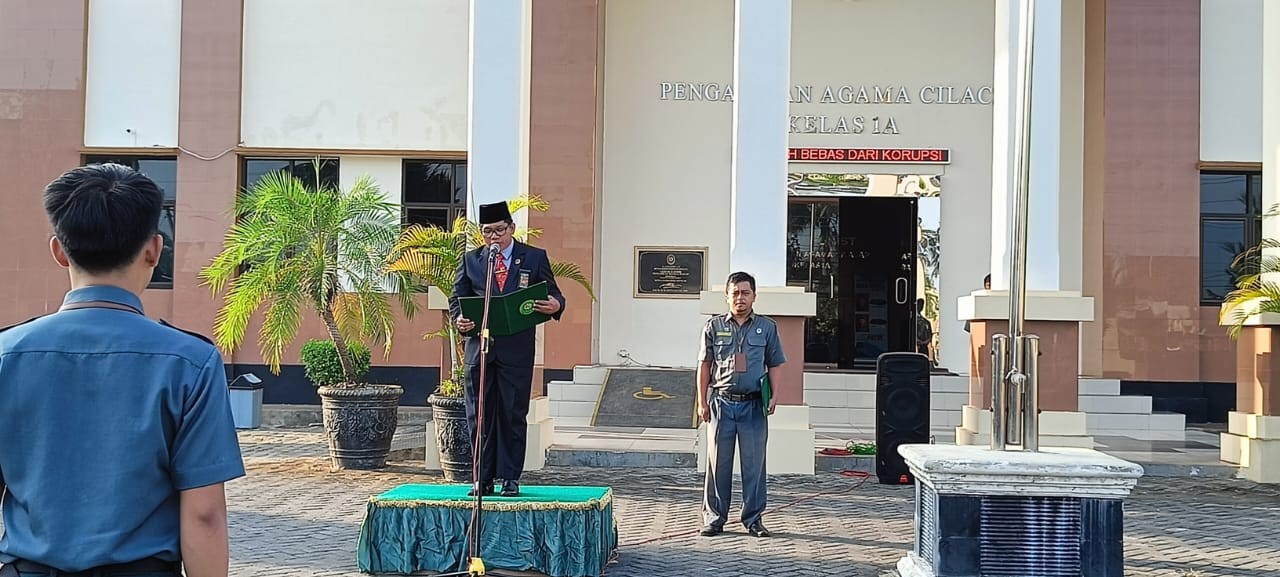 Bertempat di lapangan Pengadilan Agama Cilacap menyelenggarakan upacara peringatan Hari Lahir Pancasila Tahun 2023 yang diikuti oleh seluruh hakim dan pegawai di Lingkungan Pengadilan Agama Cilacap, Kamis (1/6).