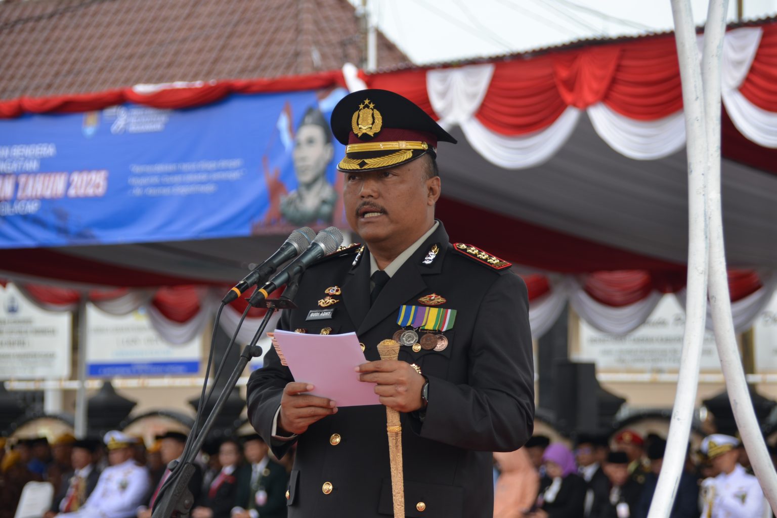 Upacara Hari Pahlawan di Cilacap tahun ini berlangsung khidmat dan penuh makna. Para peserta tampak antusias mengikuti seluruh rangkaian acara hingga selesai. Tema nasional peringatan Hari Pahlawan tahun 2025 adalah “Pahlawanku Teladanku: Terus Bergerak Melanjutkan Perjuangan”.