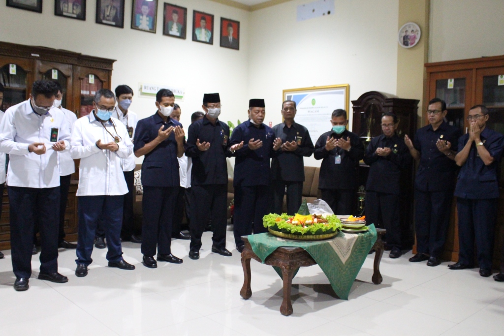 Setelah doa bersama, dilanjutkan pemotongan tumpeng dan penyerahan potongan tumpeng pertama kepada Drs. Noor Shofa, SH. M.H. Hakim Pengadilan Agama Cilacap selaku Ketua Area Manajemen Perubahan Zona Integritas.