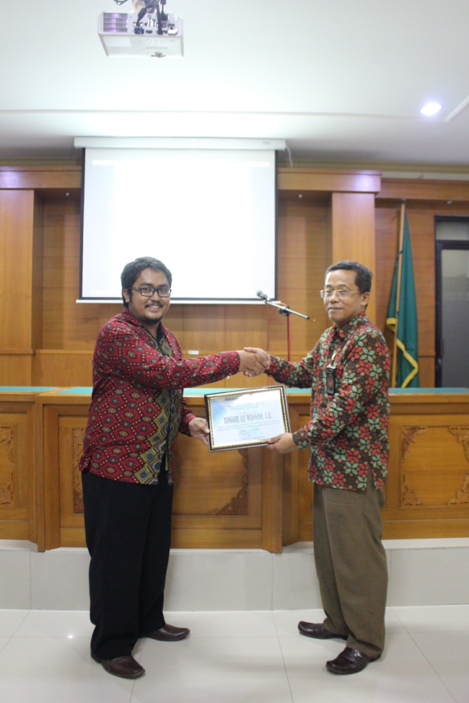 Penyerahan Tanda Penghargaan kepada Advokat Bapak Tunggul Aji Widigdo. S.H.  yang mendaftarkan perkara dengan e-Court Terbanyak pada Tahun 2019 sebanyak 45 perkara.