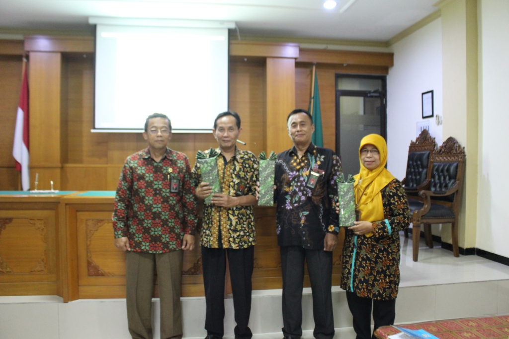 Penyerahan Tanda Penghargaan kepada Majelis Hakim terbanyak memutus perkara yaitu Drs. Noer Rohman sebagai ketua Majelis, Drs. H. Umar Jaya, S.H., M.H. sebagai anggota majelis dan Siti Rohmah, S.H. sebagai Panitera Pengganti.