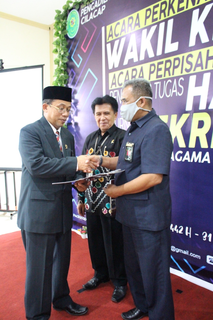 Pada hari Senin, 31 Agustus 2020 pukul 14.00 WIB, Ketua Pengadilan Agama Cilacap, Drs. H. Syaefuddin Turmudy, M.H, melantik dan mengambil sumpah Drs. H. M. Kahfi, S.H, M.H. sebagai Wakil Ketua Pengadilan Agama Cilacap Kelas IA yang sebelumnya menjabat Wakil Ketua Pengadilan Agama Balikpapan. Acara dirangkai dengan pengantar alih tugas hakim Drs, Syahrial, M.H yang dimutasi ke Pengadilan Agama Banjarnegara kelas IA dan purna tugas sekretaris Tofik,S.H yang memasuki pensiun.