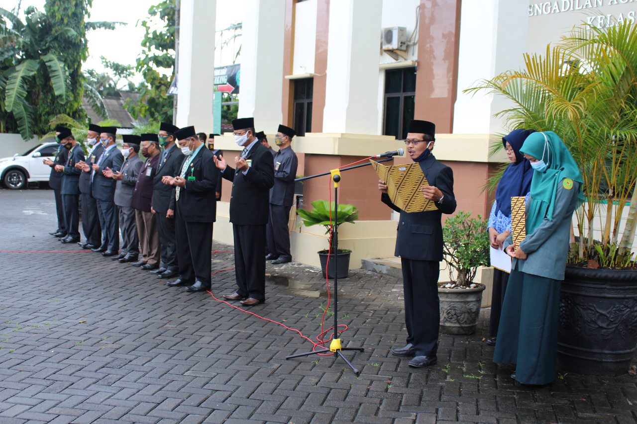 mengajak kepada seluruh pegawai Pengadilan Agama Cilacap untuk selalu mengiinspirasi dan memotivasi kita semua untuk meneruskan perjuangan mereka, Kalau dulu kita berjuang mengakat senjata, maka sekarang kita berjuang melawan berbagai permasalahan bangsa,seperti : Kemiskinan, Bencana Alam, Narkoba, paham - paham Radikal dan termasuk berjuang melawan pandemi covid 19 yang saat ini melanda dunia