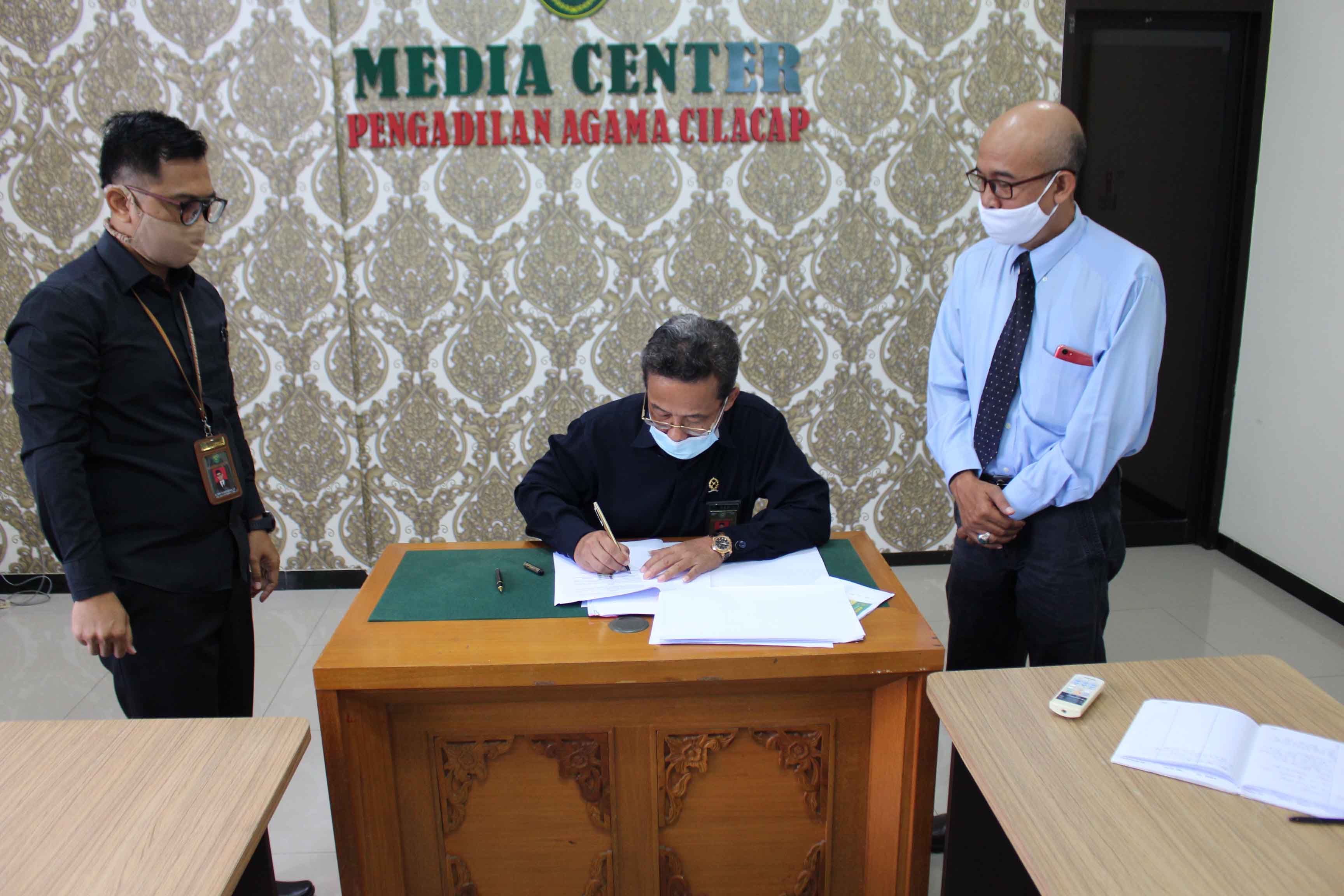 Bertempat di ruang Media Center Pengadilan Agama Cilacap, Ketua Pengadilan Agama Cilacap Bapak Drs. H. Saefuddin Turmudzy, M.H. dan Direktur Lembaga Bantuan Hukum Wahana Bapak Teguh Tri Wibowo, S.H melaksanakan penandatanganan MoU Pos Bantuan Hukum (Posbakum) Tahun 2021 pada hari Jumat (15/01/2021).