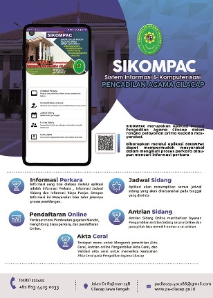 Pada awal tahun 2021 Pengadilan Agama Cilacap meluncurkan sebuah aplikasi baru yang diberi nama SIKOMPAC akronim dari Sistem Informasi dan Komputerisasi Pengadilan Agama Cialacap berbasis andoroid yang dapat diunduh melalui aplikasi Google Play Store.