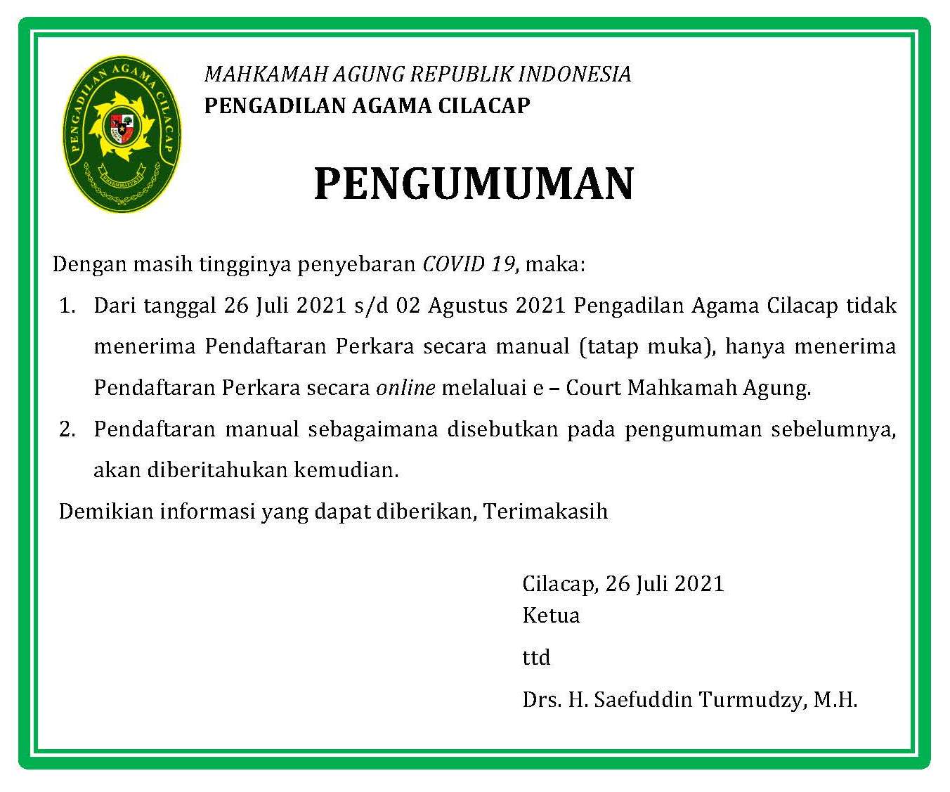 E-mail Cetak Penggumuman Pelayanan Pendaftaran 26 Juni 2019 s/d 02 Agustus 2021 on 26 Juli 2021. on 26 Juli 2021. Dilihat: 1548
