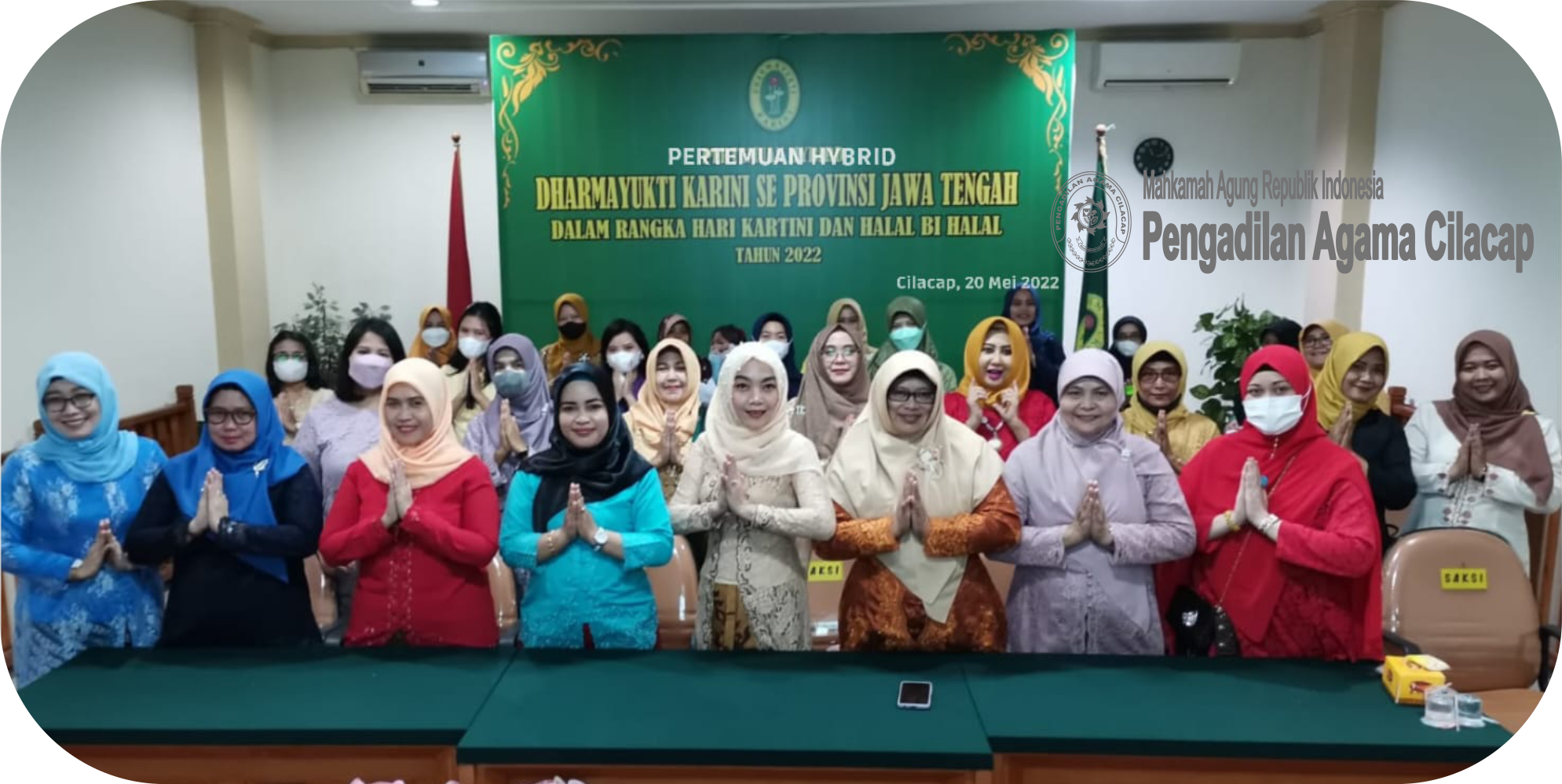 Cilacap, Pengadilan Agama Cilacap - Berbusana kebaya, Dharmayukti Karini Cabang Cilacap menghadiri “Pertemuan Hybrid Dharmayukti Karini se-Provinsi  Jawa Tengah dalam Rangka Memperingati Hari Kartini dan Halal Bihalal Tahun 2022” melalui zoom meeting  di Pengadilan Agama Cilacap (Jumat, 20 Mei 2022). Acara diadakan hybrid yaitu, pengurus daerah mengikuti pertemuan secara tatap muka di Aula Cakra PT Semarang. Sedangkan DyK Cabang seWilayah Jawa Tengah mengikuti acara secara daring dari wilayahnya masing-masing.