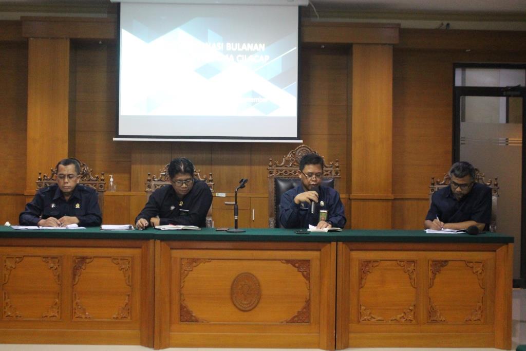Cilacap, Rabu 28 September 2022 pukul 13.30 WIB, bertempat di Ruang Sidang Utama Pengadilan Agama Cilacap, Pegawai Pengadilan Agama Cilacap mengadakan Rapat Koordinasi Bulanan bulan September 2022. Rapat dipimpin langsung oleh Ketua Pengadilan Agama Cilacap Bapak Drs. M. Ihsan, M.H. yang dihadiri oleh Wakil Ketua, Hakim, Sekretaris, para Panitera Muda, Pejabat struktural/fungsional, staf dan PPNPN Pengadilan Agama Cilacap.