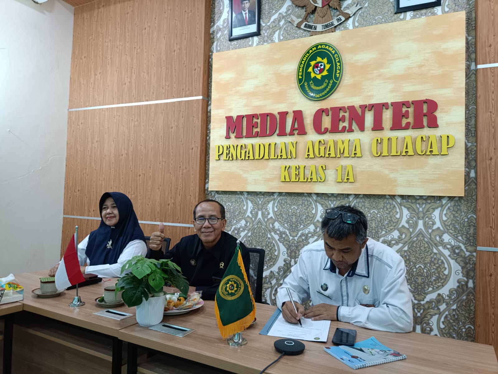 Segenap unsur Pengadilan Agama Cilacap menghadiri penandatanganan nota kesepahaman tersebut melalui zoom dari ruang media center.