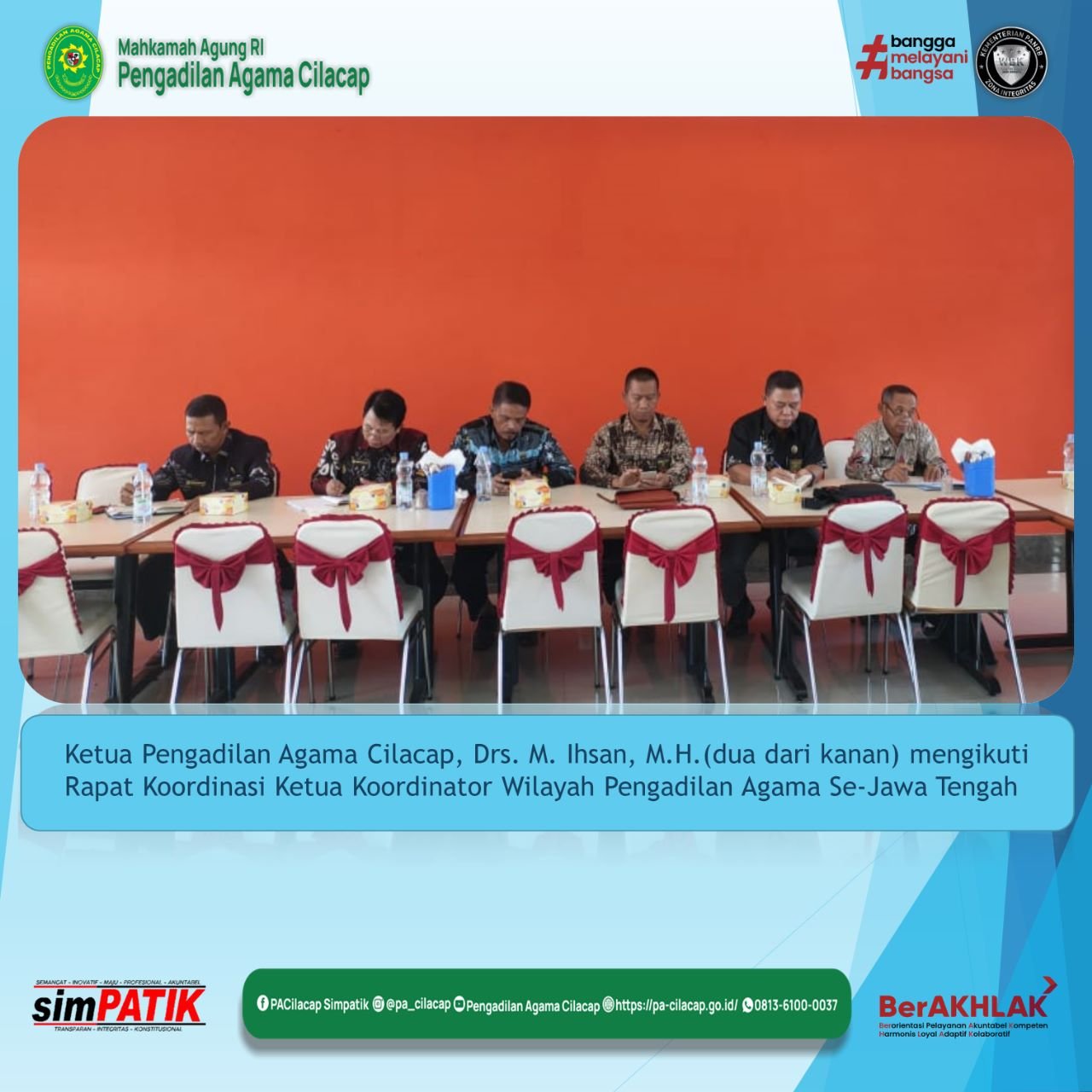 Jumat, 14 Oktober 2022 Ketua Pengadilan Agama Cilacap, Drs. M. Ihsan, M.H., menghadiri Rapat Koordinasi Ketua Koordinator Wilayah Pengadilan Agama Se-Jawa Tengah di Semarang.