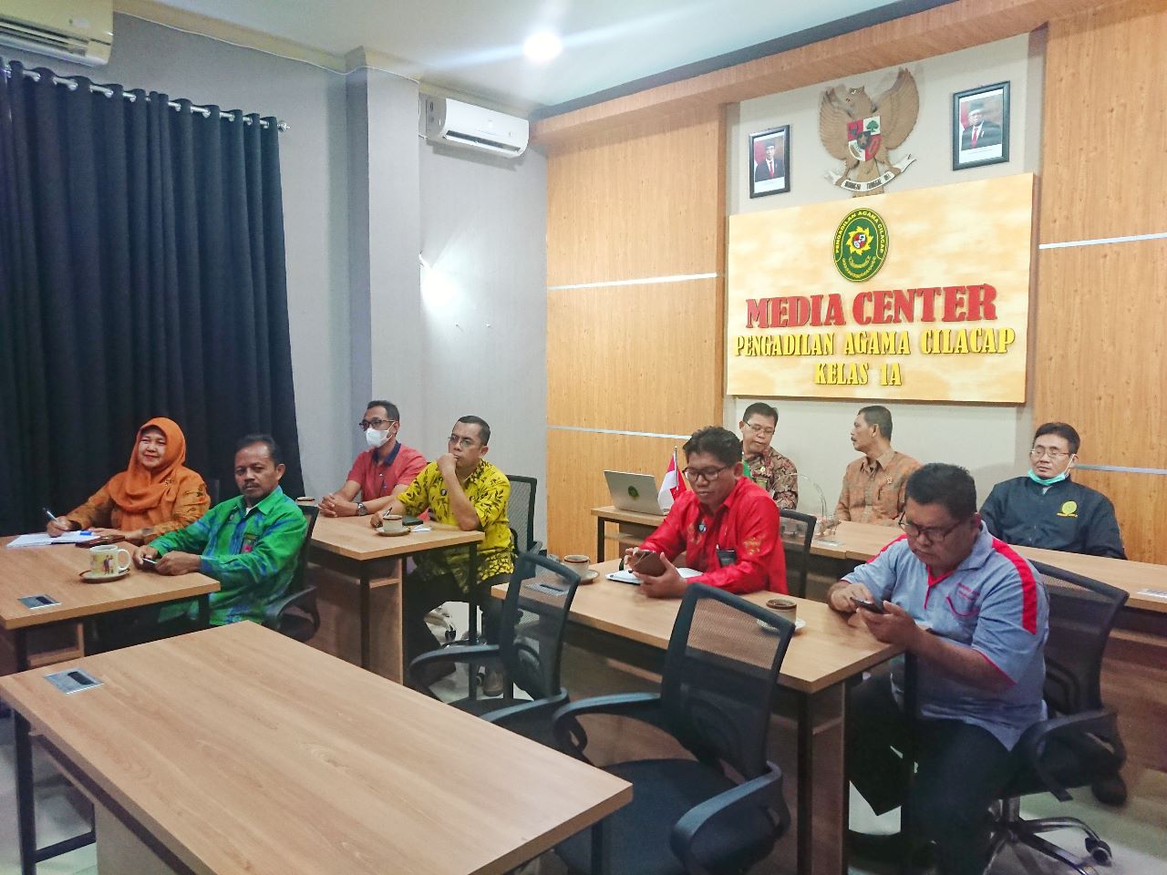 Cilacap-PA Cilacap, Jumat 09 Desember 2022, Hakim dan Tenaga Teknis bagian Kepaniteraan Pengadilan Agama Cilacap kelas I A mengikuti Kegiatan bimbingan Teknis secara Daring di ruang Media Center Pengadilan Agama Cilacap. Kegiatan tersebut diinisiasi oleh Badan Peradilan Agama Mahakamah Agung Republik Indonesia dalam rangka meningkatkan kualitas dan kapasitas tenaga teknis di lingkungan peradilan agama dalam permasalahan teknis yudisial.