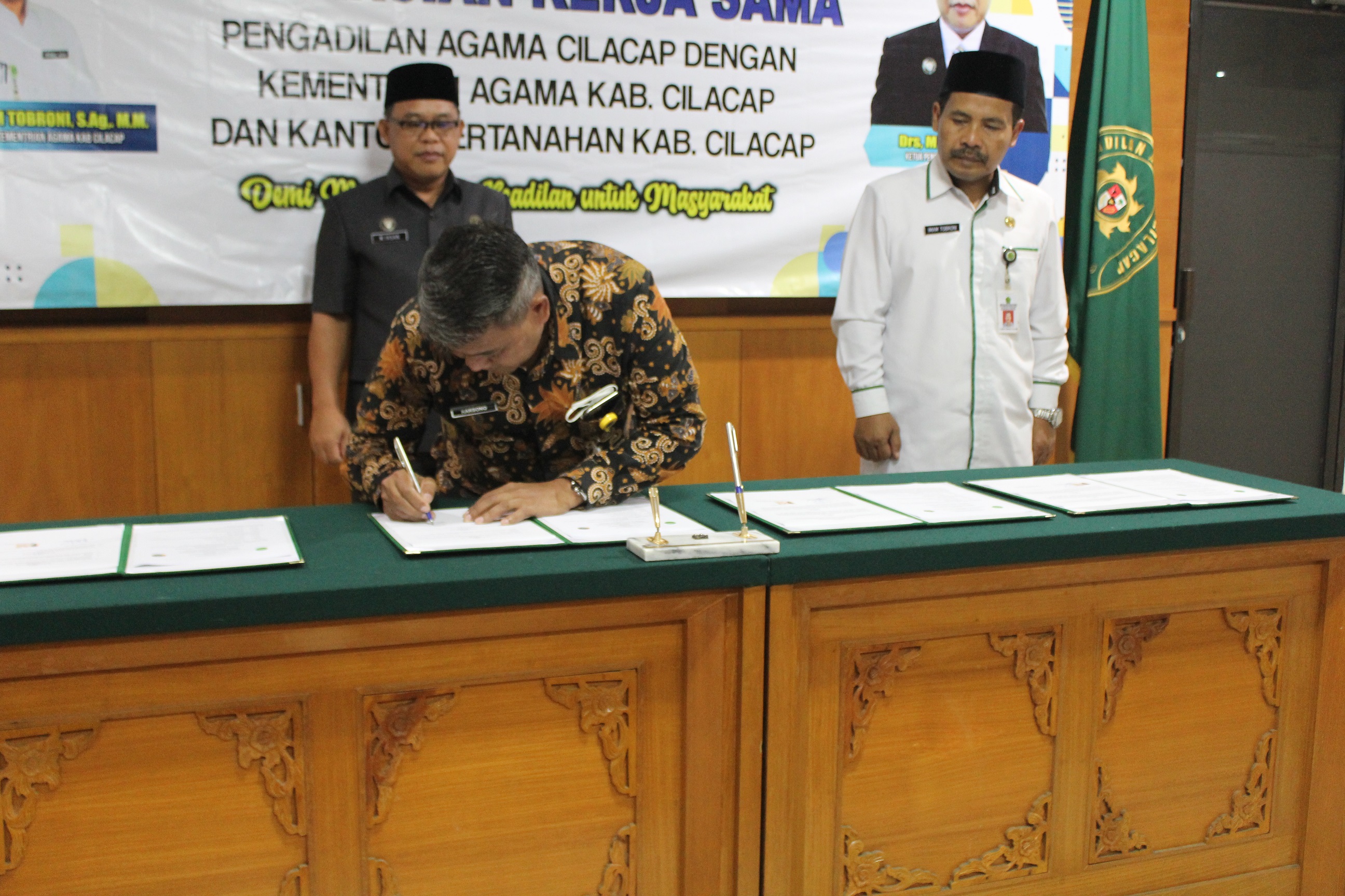Penandatanganan Perjanjian Kerja Sama Antara Pengadilan Agama Cilacap dengan Kantor Pertanahan Serta Kantor Kementerian Agama Kabupaten Cilacap