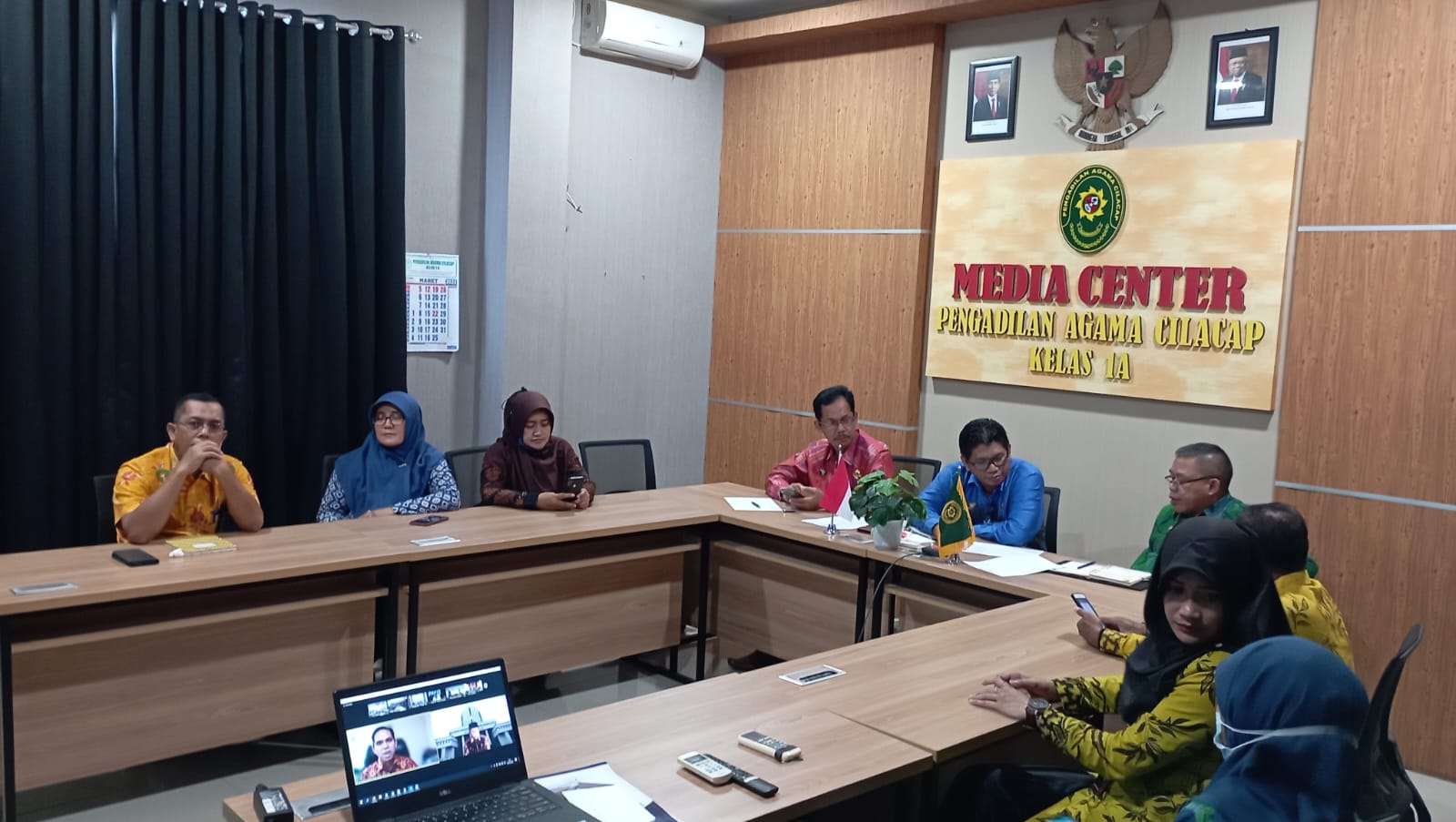 Kamis, 30 Maret 2023, Pegawai atau yang masuk dalam kategori Tenaga Teknis Pengadilan Agama Cilacap yang terdiri dari Hakim, Panitera, Panitera Pengganti , dan Jurusita mengikuti bimbingan Teknis Yudisial yang diadakan oleh Dirjen Badan Peradilan Agama Mahkamah Agung Republik Indonesia secara Daring (Dalam Ruangan/Online) di ruang Media Center Pengadilan Agama Cilacap. Adapun tema yang dibahas dalam bimbingan teknis tersebut ialah tentang Implementasi Surat Edaran Mahkamah Agung mengenai Hasil Rapat Pleno Kamar dalam putusan yang diajukan perkara kasasi dan peninjauan kembali di lingkungan Peradilan Agama.