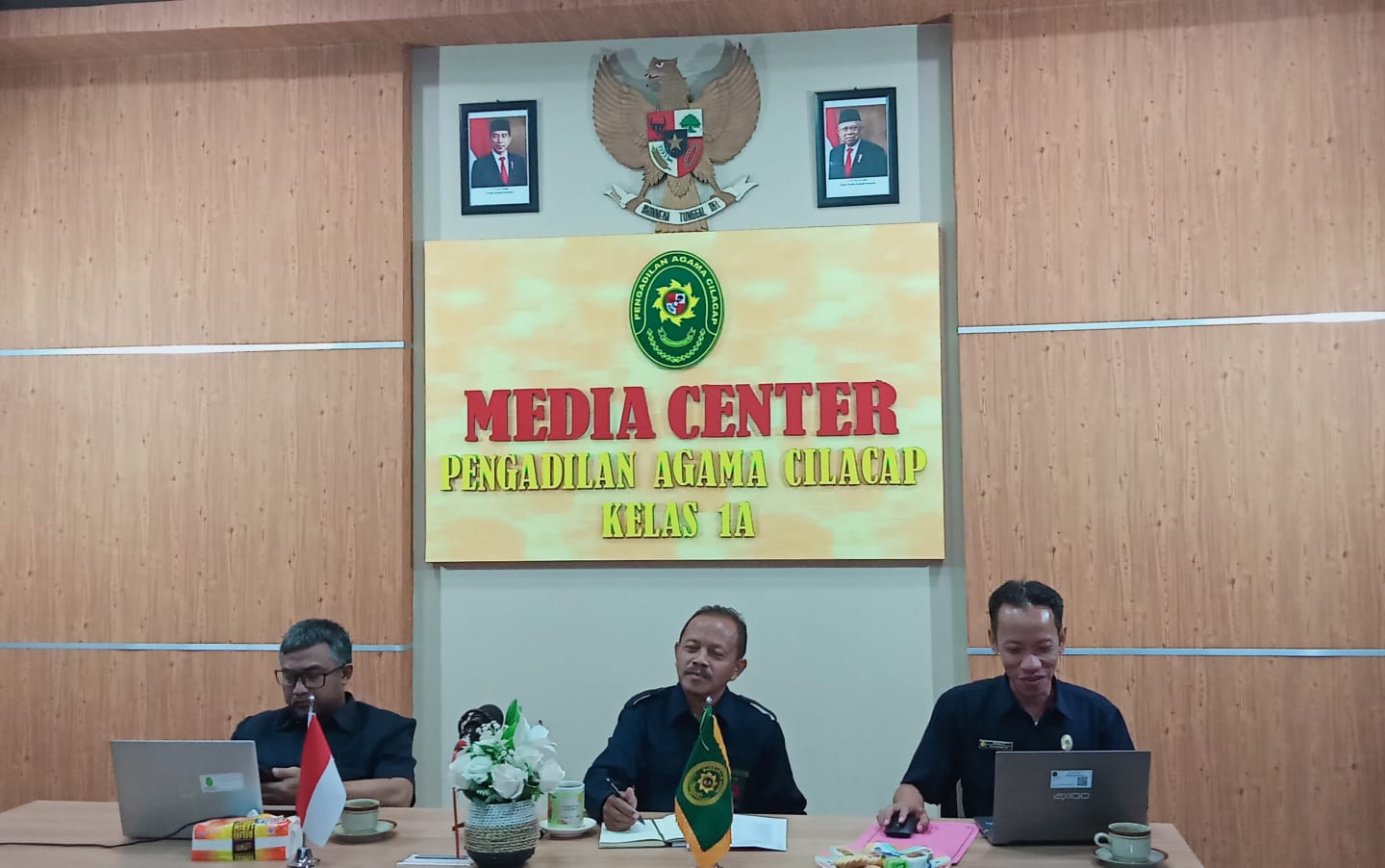 Cilacap, (6/6/2023) Sekretaris (Bpk. Wardoyo Dwi Astoto, SE.), Kasubag PTIP  (Bpk. H. Idris,S.H.)  dan Kasubag Ortala (Bpk. Murwanto, SE) mengikuti kegiatan zoom meeting dalam rangka Rapat Koordinasi Kebijakan dan Penganggaran Mahkamah Agung Tahun Anggaran 2024 pada hari ini, Selasa, (06/06/2023) pukul 13.00 WIB. Kegiatan ini berkenaan persiapan pelaksanaan penyusunan dan pendampingan RKA-K/L Pagu Indikatif Tahun Anggaran 2024.