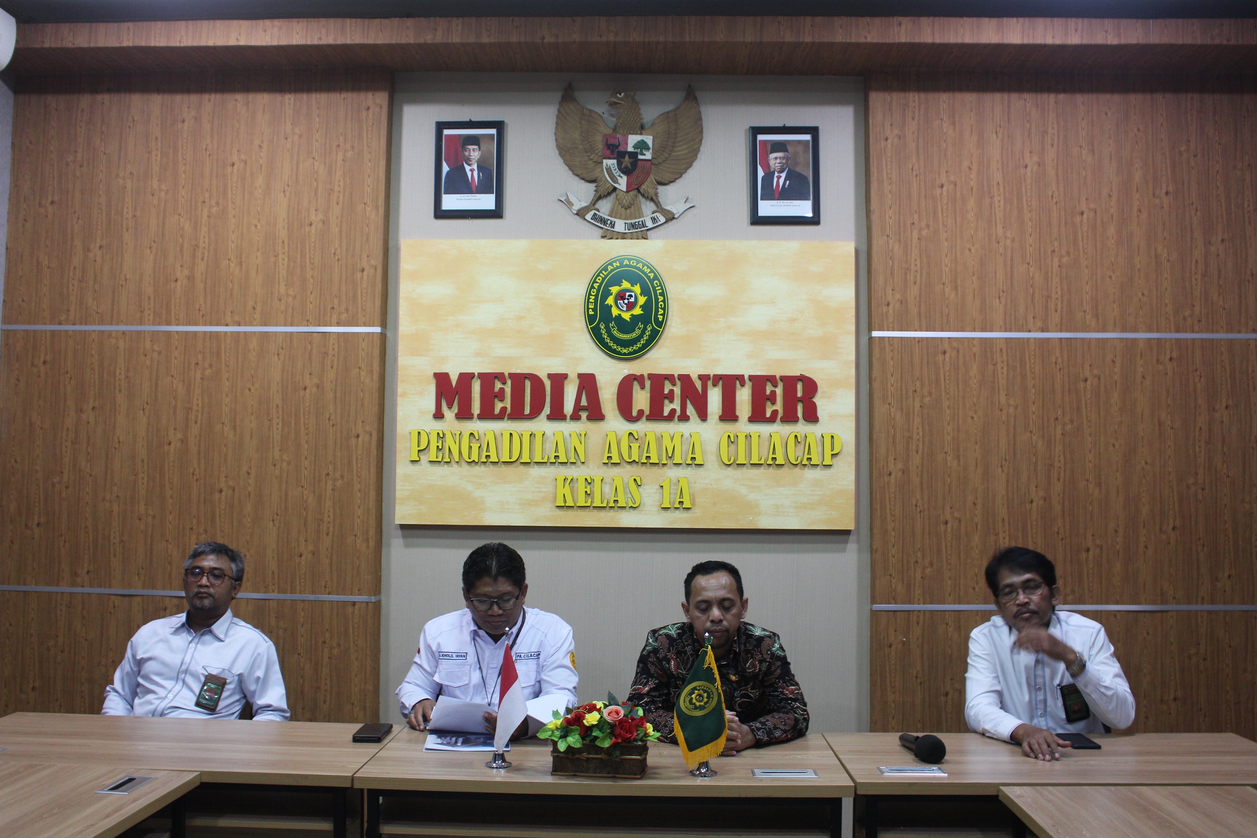 Cilacap, 8 Juli 2024. Bertempat di Ruang Media Center, Wakil Ketua Pengadilan Agama Cilacap Bp. Akhmad Kholil Irfan, S.Ag, SH, MH. Hakim Pembimbing PPL Bp. Drs. Muslim M.H, Panitera Bp. Mokhamad Miftah S.Ag dan Sekretaris Bp. Wardoyo Dwi Astot, SE, MSi menerima mahasiswa dari UIN SUIZU Purwokerto untuk melaksanakan Praktik Pengalaman Lapangan (PPL) di Pengadilan Agama Cilacap. (08/07/2024).
