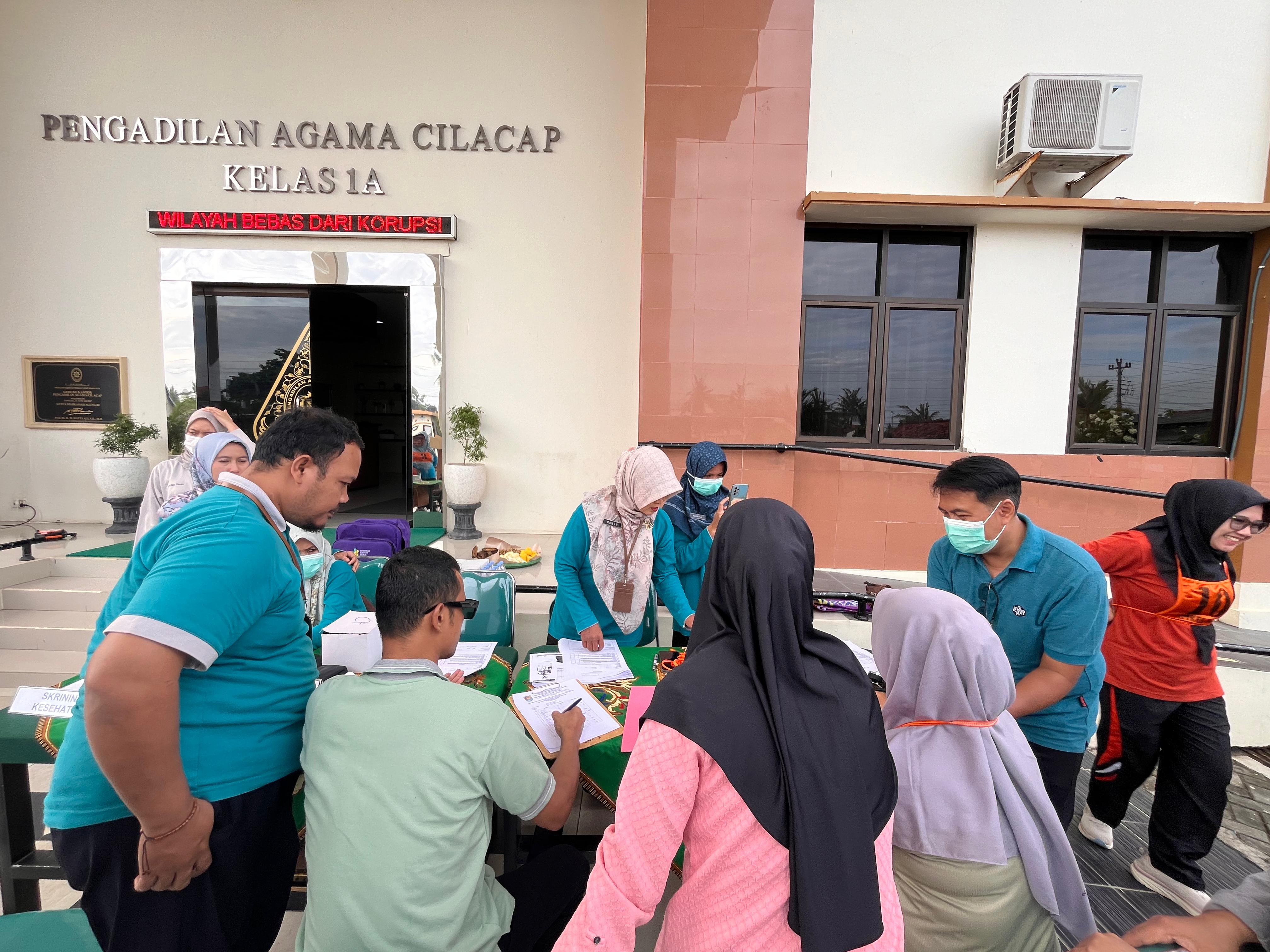 Cilacap, 20 Juni 2025 - Pengadilan Agama Cilacap menerima kunjungan dari Puskesmas Cilacap dalam rangka screening cek kesehatan kepada seluruh Aparatur Pengadilan Agama Cilacap. Skrining Kesehatan yang dilakukan ini merupakan kegiatan pemeriksaan kesehatan yang mencakup pengecekan tensi darah, gula darah, asam urat dan kolesterol. Screening ini merupakan bentuk tindak lanjut kerjasama Pengadilan Agama Cilacap dengan Dinas Kesehatan Kabupaten Cilacap.