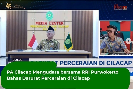 Cilacap - Hakim Pengadilan Agama Cilacap, Drs. AF. Maftukhin, M.H. menjadi narasumber dalam Acara Dialog Pagi yang mengudara di Radio RRI Purwokerto, Kamis (7/8/2025) melalui zoom. Acara yang dipandu oleh Mas Priyo ini mengambil tema Darurat Perceraian di Cilacap.Jumlah perkara perceraian di Cilacap stabil puncaknya mencapai 7.346 kasus saat pandemi COVID-19 melanda.