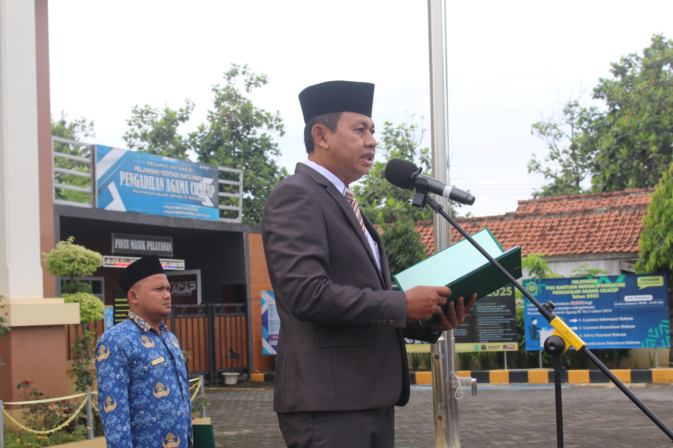 Upacara berlangsung dengan tertib dan penuh makna, diikuti oleh seluruh jajaran pegawai Pengadilan Agama Cilacap serta para mahasiswa magang yang sedang melaksanakan praktik di instansi tersebut. Seluruh peserta tampak khidmat mengikuti jalannya upacara dari awal hingga akhir.