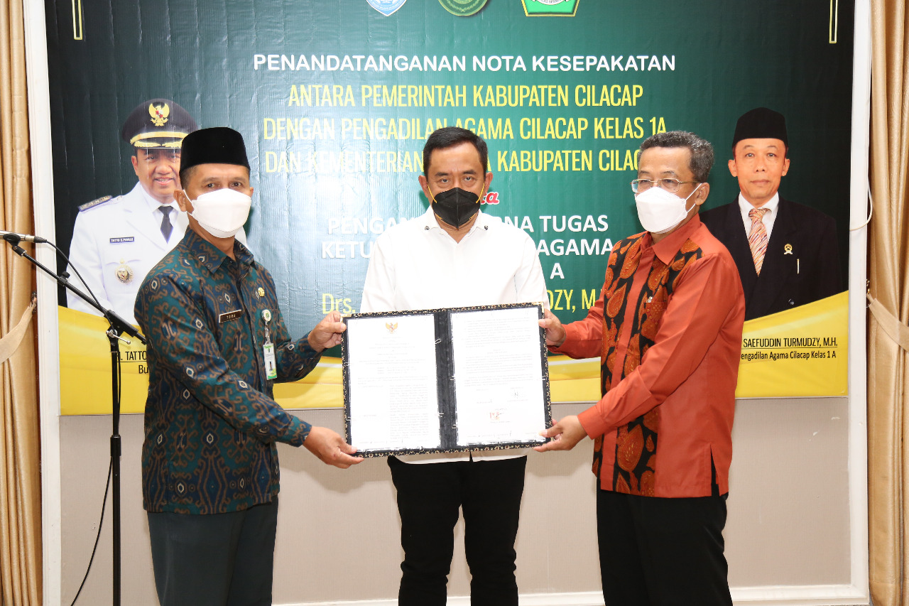 Dalam acara tersebut juga dilakukan penandatangan Nota Kesepakatan Antara Pengadilan Agama kelas 1 A, Kementrian Agama Kabupaten Cilacap dan Pemerintah Daerah Kabupaten Cilacap tentang sinergitas pelayanan terpadu isbat nikah, pencatatan pernikahan,dan pelaksanaan urusan administrasi kependudukan.