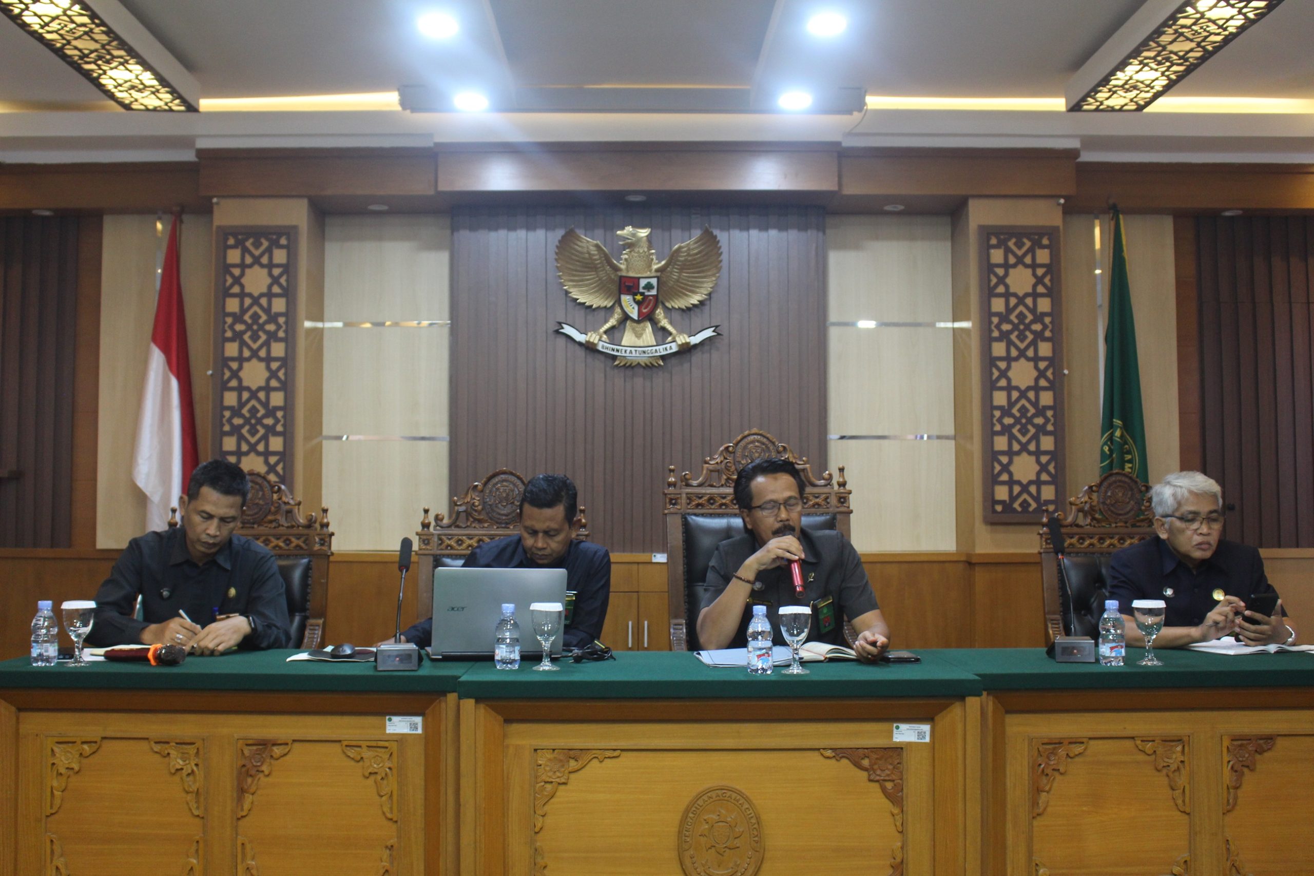 Pengadilan Agama Cilacap melaksanakan Rapat Monitoring, Evaluasi, dan Pembinaan Bulan Desember Tahun 2025 pada Selasa, 9 Desember 2025, bertempat di Ruang Sidang Utama Pengadilan Agama Cilacap. Kegiatan ini diikuti oleh seluruh hakim, pejabat struktural, pejabat fungsional, serta seluruh pegawai sebagai bagian dari komitmen bersama untuk meningkatkan kualitas kinerja dan pelayanan kepada masyarakat.