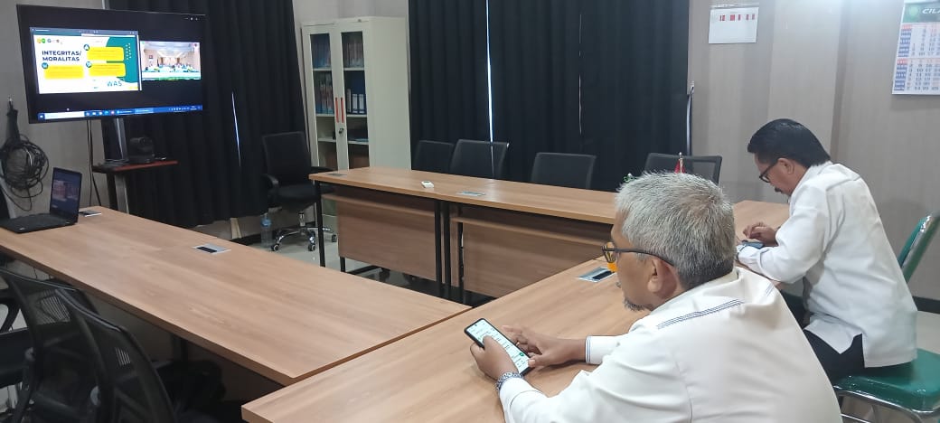Cilacap,(19/05/2025) bertempat di ruang media center PA Cilacap, Drs. Ahmad Juaeni, MH (Ketua) dan Mokhamad Miftah, S.Ag., MH (Panitera),  mengikuti kegiatan sosialisasi Draft Penilaian Kinerja Triwulan I tahun 2025 dari PTA Semarang secara daring.
