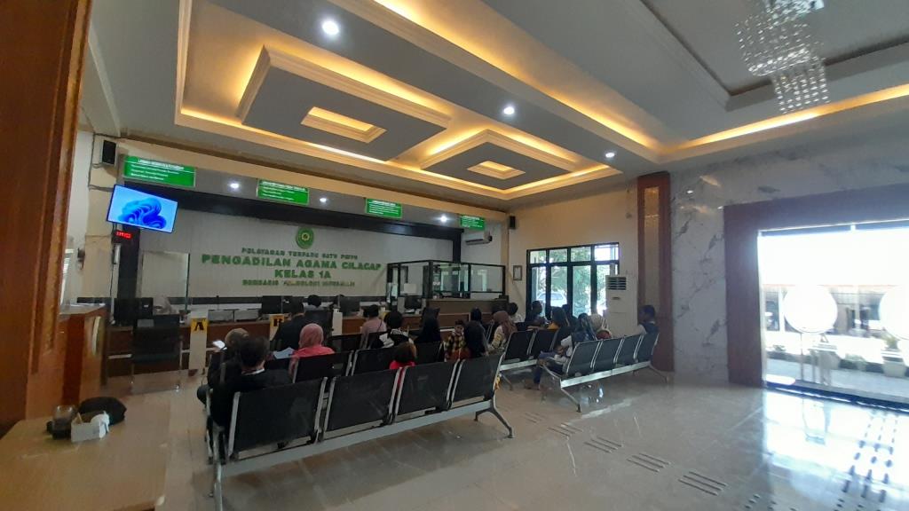 Kamis 27 April 2023, Nampak penuh antrian kursi depan oleh para pengguna layanan di ruang tunggu PTSP (Pelayanan Terpadu Satu Pintu) Pengadilan Agama Cilacap. Adapun penampakan antrian tersebut merupakan termasuk yang paling sedikit dibandingkan hari-hari biasanya. Pasalnya Pengadilan Agama Cilacap sendiri memang baru buka penerimaan pelayanan mulai tanggal 26 April 2023 setelah libur panjang karena cuti bersama di hari Raya Idul Fitri 1444 Hijriah dari tanggal 19 s/d 25 April 2023.