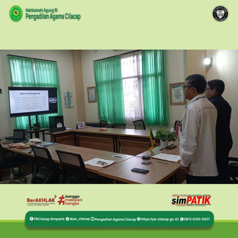 Cilacap, PA Cilacap – Unsur Pimpinan Pengadilan Agama Cilacap mengikuti Pengucapan Pakta Integritas yang dipimpin oleh Ketua Ditjen Badilag, Dr. Drs. Aco Nur, S.H., M.H. melalui zoom meeting dari Ruang Media Center PA Cilacap.